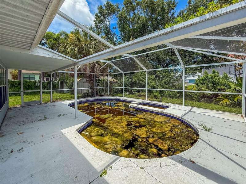 ATTENTION INVESTORS. Here is your next project. This 3/1 could easily become a 4/2. Has a caged pool. The Utility room and den have washer dryer hook ups.The flood damage from the hurricane is gone. The AC and Electric are good. All appliances are gone ready to be replaced. NO HOA fee. Access to the boat launch is grandfathered into the property. Very close to the bay and gulf. This has a ton of potential. Located in Palmetto Point Subdivision. You will enjoy NO HOA FEES. This is vacant and ready to show....do yourself a favor and go take a look