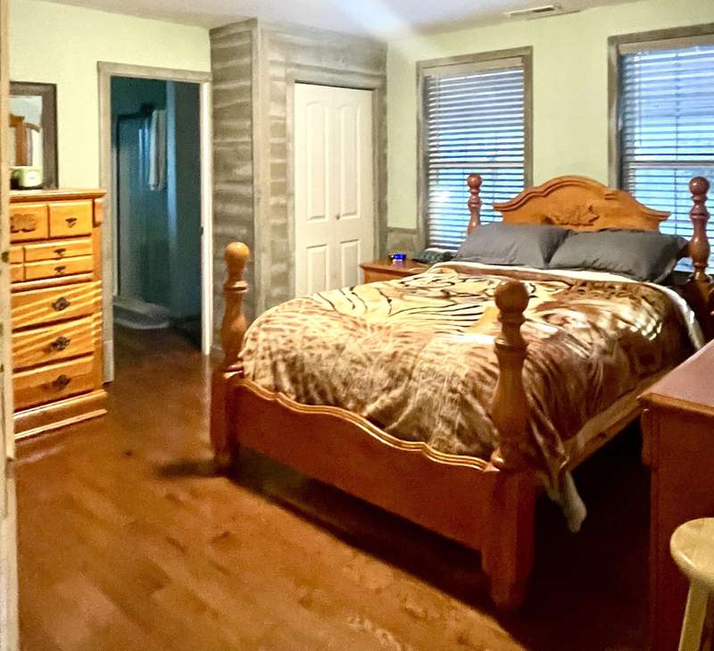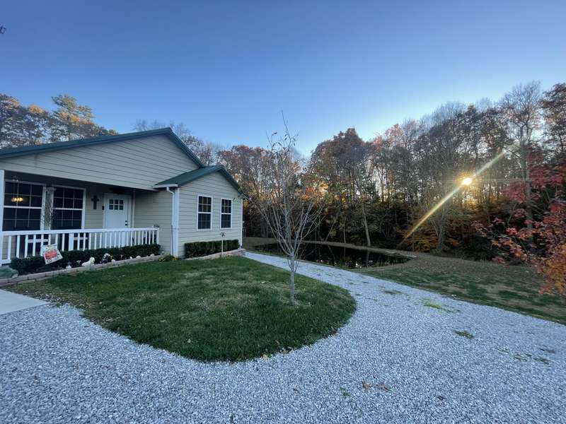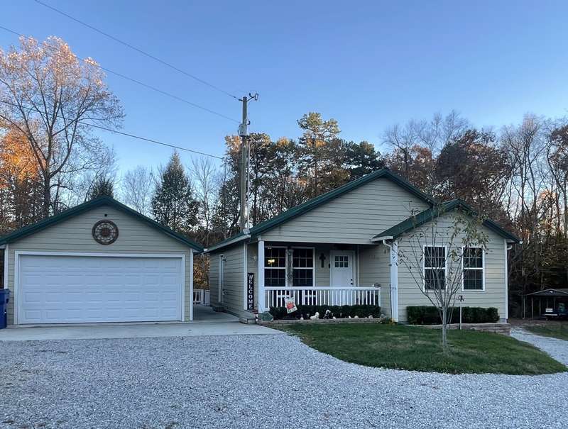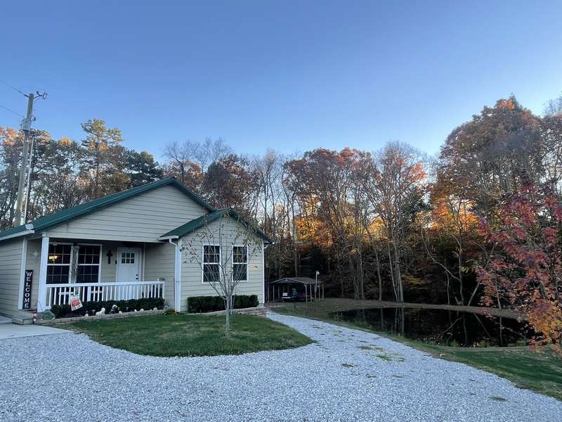 This 1-bedroom 1 bath 885 sq ft charming, cozy, home is nestled on 1.38 surveyed acres and is awaiting its's new owners. There is a 2 car detached garage with a bedroom in the back of garage that is heated and cooled. There is a small storage shed, a single carport, a double carport, and a camper hookup in the lower yard beside the small pond. This home is about 3 years old and only 3.6 miles from town. It features a spacious and inviting floor plan, a cozy gas fireplace, and 3 year old appliances. The washer and dryer are conveying. This home offers plenty of today's modern comforts and practicality. This home will not disappoint! Schedule your private showing today.