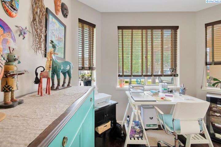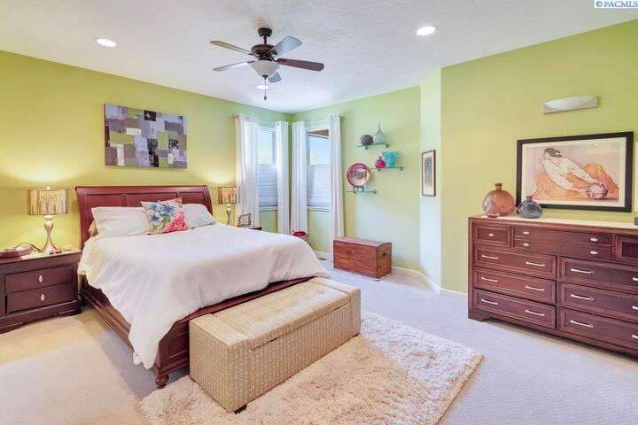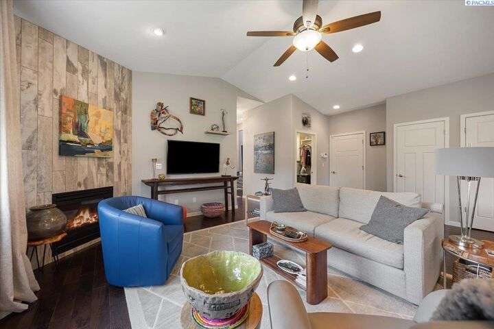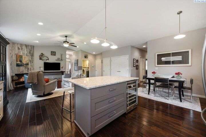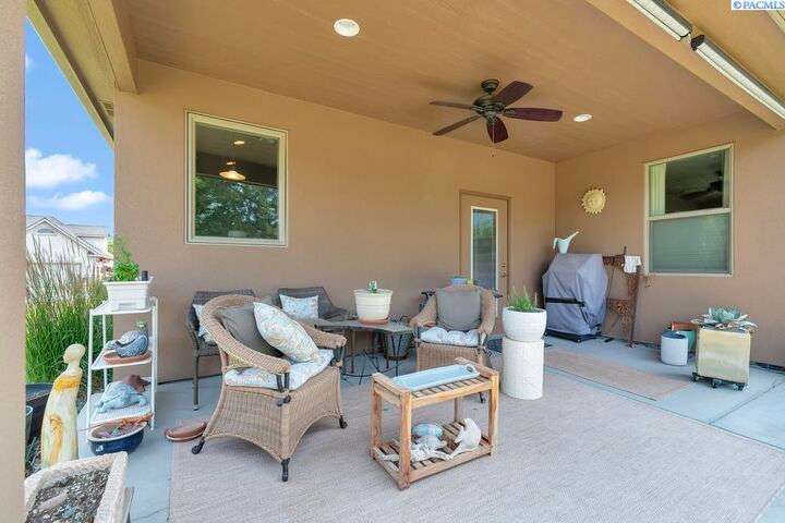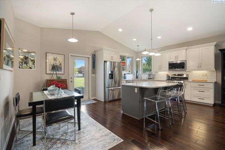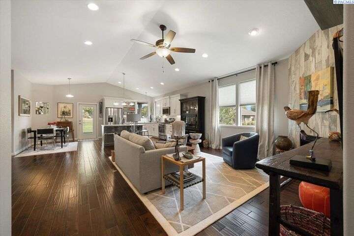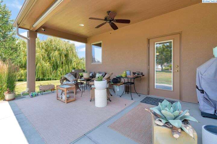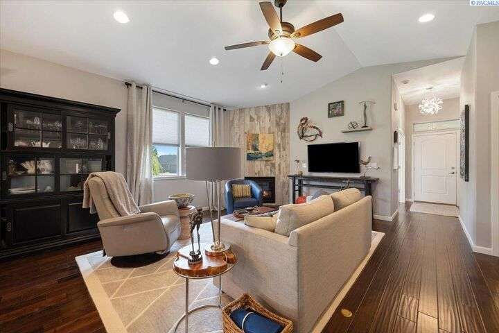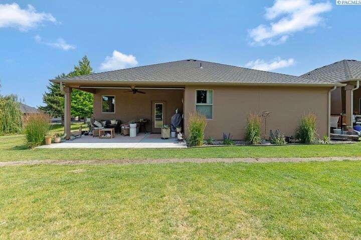 MLS# 286668 Welcome to this special custom desirable one-level home in the sought-after Ridgeline-Canyon Lakes Community. This 3-bedroom, 2-bath residence is truly unique with wonderful detail including lovely vaulted ceilings that blend refined comfort with functional living and lots of style and unique touches. The chef’s kitchen boasts gorgeous countertops, stainless steel appliances, a large island with breakfast bar seating, and a spacious double-door pantry. Multiple storage options—coat, broom, and linen closets—help keep everything organized.The primary suite is a true retreat, featuring a generously sized bedroom, walk-in closet, and amazing bathroom with a walk-in shower and dedicated linen closet. The garage is perfect for hobbies or projects.A custom built home, the interior is beautifully styled and meticulously maintained. Outdoors, the private patio overlooks a lush green space with mature trees, offering a peaceful setting for entertaining or relaxing. Additional highlights include a dedicated laundry room with cabinetry, an owned water softener, and timeless finishes throughout. Located in a beautiful golf course community, this home offers both elegance and convenience in a prime location.