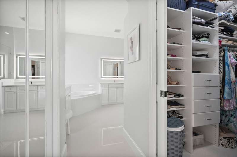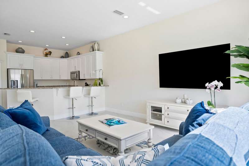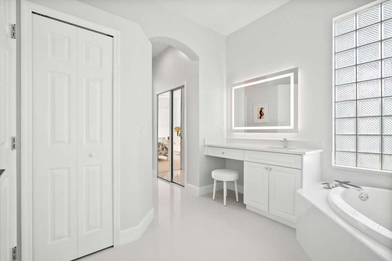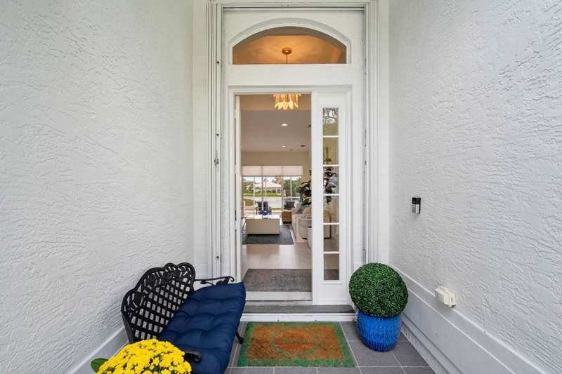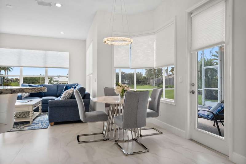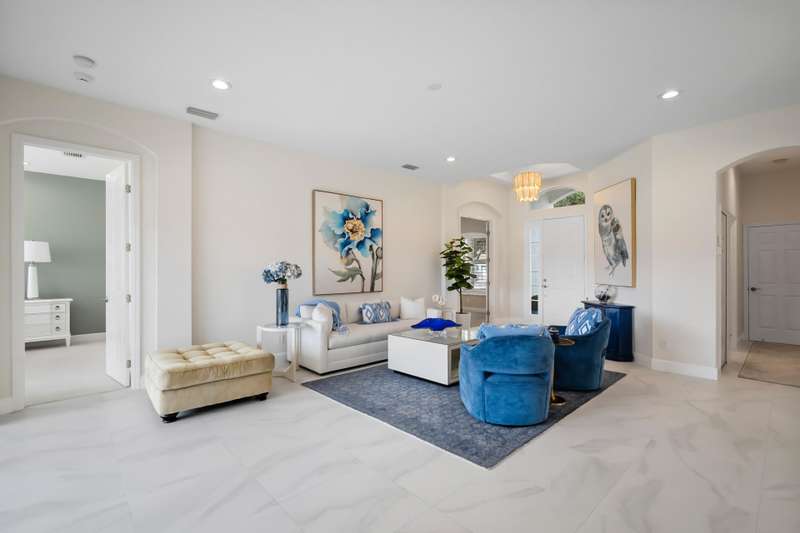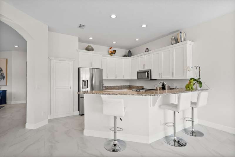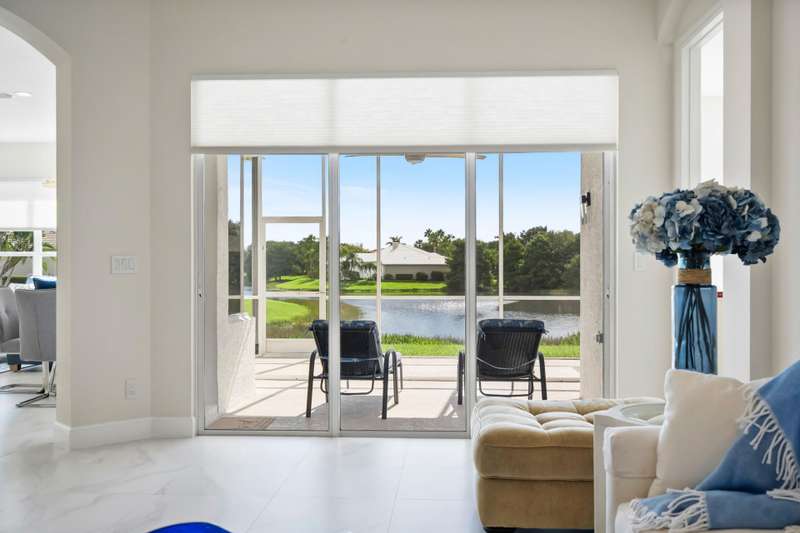 Beautifully renovated 3-bedroom, 2-bath home with an oversized 2-car garage plus bonus space for a golf cart or more. Roof replaced in 2021. The elegant double tray ceiling entry opens to arched walls and a formal dining area accented with wainscoting, an upgraded chandelier, and crown molding. The kitchen features 42 solid wood cabinets with crown molding, soft-close drawers, a new range, and newer appliances. Soaring 10-ft ceilings, 8-ft doors, and arched entryways are found throughout. Abundant natural light pours in through custom 76 windows in every room, complemented by remote-control blinds in common areas. Bedrooms offer walk-in closets, and the primary suite boasts serene lake views--also enjoyed from all common areas.