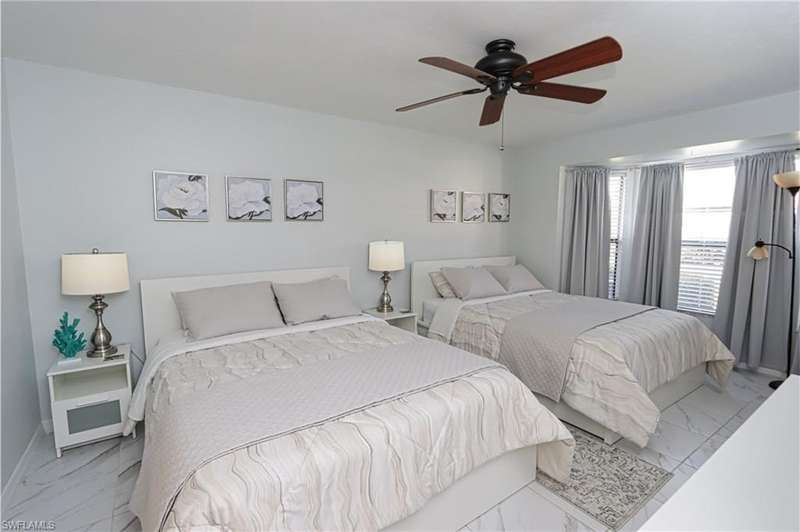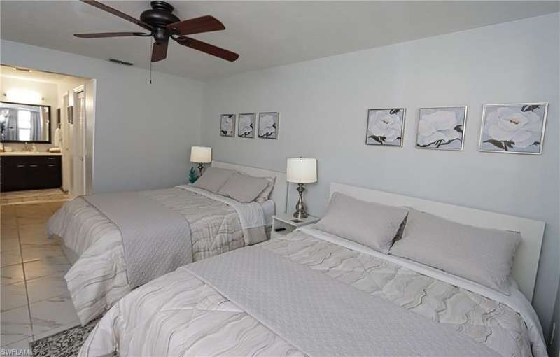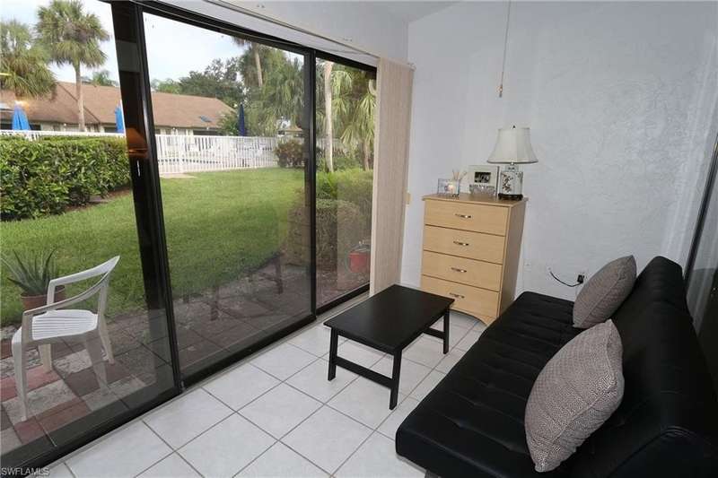 This cute and cozy ground floor villa in Regent Park offers two bedrooms, two bath, vaulted ceilings and screened Lanai overlooking the pool. The Master bedroom features 2 queen beds and a king in the guest bedroom. Located just East of Airport Road, off of Immokalee Road. A short drive to the white sand of the Vanderbilt Beach and Delnor Wiggins State Park or word class shopping and dining down on 5th Ave. with many other great spots in between.