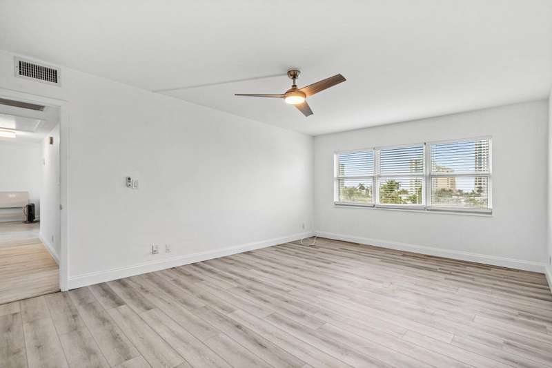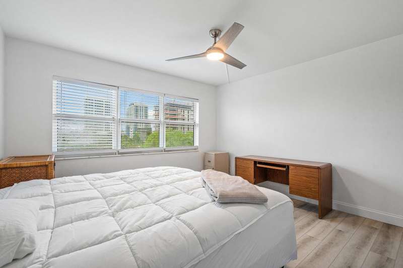 Just steps from the beautiful Ft. Lauderdale beaches and 2 miles to Las Olas. Completely renovated 2/2 condo on the 5th floor facing the ocean. Oversized master bedroom with a large walk-in closet and new bathroom. Laminate flooring throughout, freshly painted from top to bottom (NO popcorn ceilings), SS Appliances, quartz kitchen countertops, large pantry, brand new AC, impact windows, assigned PRIME covered parking, bike storage, gym, and community pool. NO pets and No smoking.