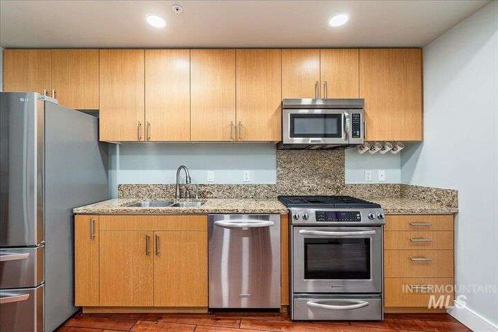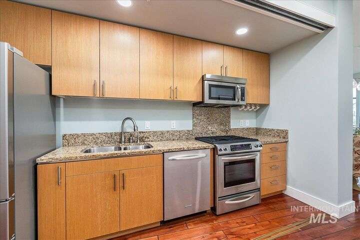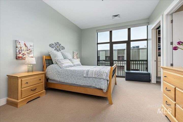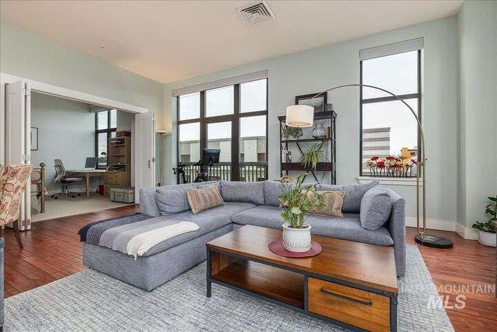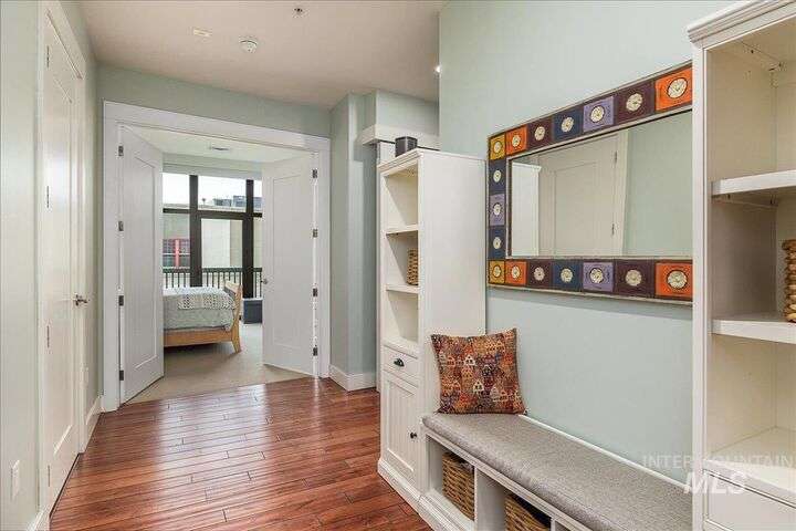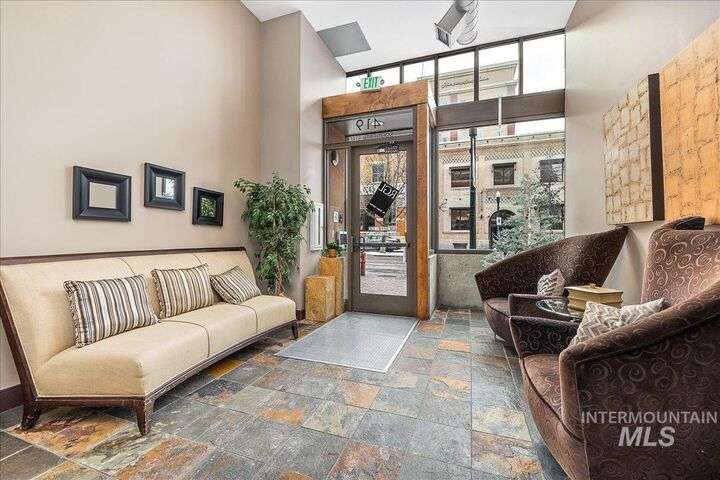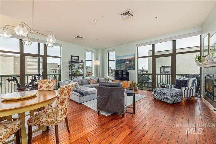 Experience Urban living in the heart of downtown Boise. Totally turnkey in the BoDo Cultural District above 8th street marketplace with restaurants. Coffee shops, movie theater and more! A well designed layout makes entertaining a plus! Corner unit with its large great room has one balcony & two juliet balconies, gas fireplace and over 10 ft ceilings with an abundance of windows to let lots of natural light in! The beautiful galley kitchen is complemented by barn doors that can be closed off, along with a large butler-style pantry for added convenience. Master enjoys walk-in closet, tiled shower and wall of windows. 2nd bed/office/den has no closet. Includes a Stackable W/D. Deeded storage space and secured lobby. HOA dues include water & gas. Owner pays Idaho power & cable/internet. Great storage closet in the unit. Monthly Parking available in Hampton Hotel parking garage, steps from Unit.