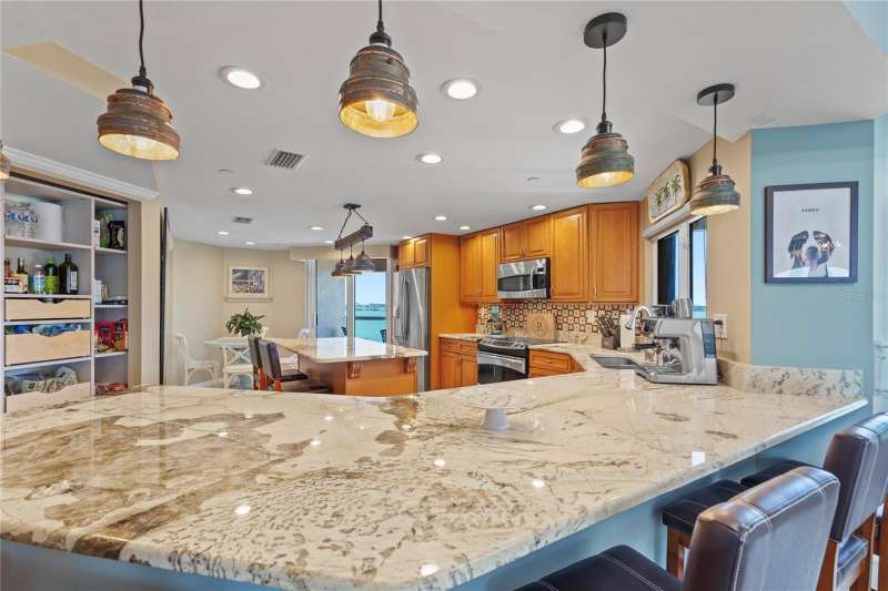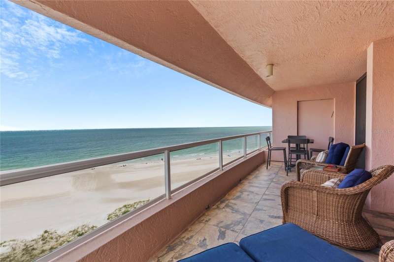 Come live the “Florida Beach Life Style” condo right on the sand. This well appointed home is being sold furnished. Stunning, rare 3 bedroom , 2 1/2 bath with 7 balconies and panoramic views of ocean & bay! Best sunrises & sunsets on Gulf Blvd. Hurricane impact windows 23/24, new window treatments throughout , master bath redone 2025 , new hot water heater in 2024, custom closets in master, kitchen & pantry, freshly painted, beautifully furnished, must see, forever home or second home! This building allows short term rental and is a great unit for investment when you are not utilizing it. Call today to see this one of a kind masterpiece. This building has every amenity you, your family, your guest or your tenants will need. 24 Hour security guard entry house, gym, sauna, steam room, billiard room, tennis court, pool, pickle ball, party/community room, gorgeous lobby, on site building management and the list goes on and on. Call the listing agent today and make your dream a reality tomorrow. The listing agent will accompany you and give the best tour of the complex.