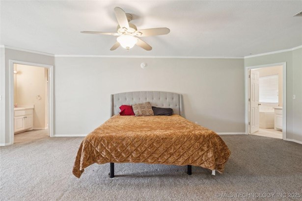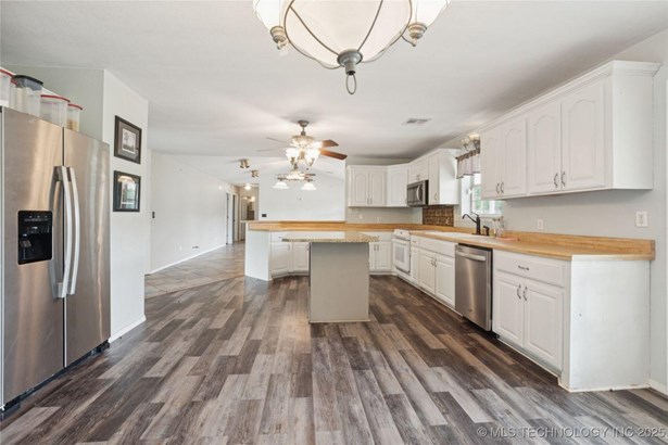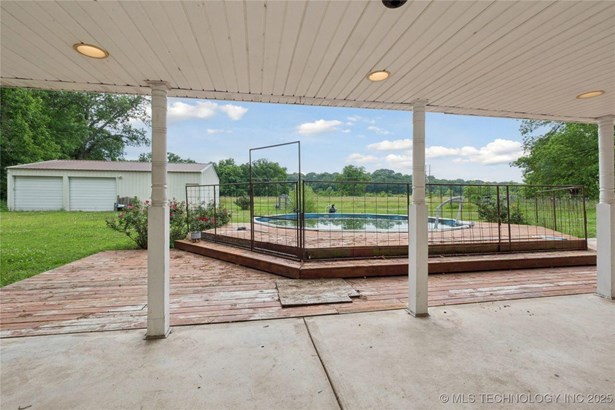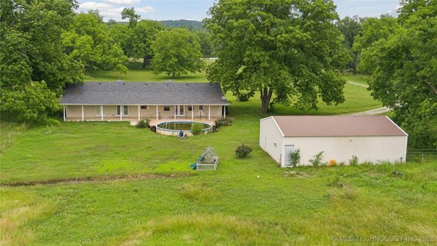 10.7 Acre Gated Estate with Scenic Views & Pecan Trees! Bring your dreams - and your horses, livestock, green thumb and hobbies! The home provides easy living! It has an open layout with 2 living areas and 2 large covered patios to enjoy throughout the seasons! The oversized primary suite is a standout with his and hers bathrooms and huge walk in closet. Outback, you'll find there's plenty of room to store equipment and enjoy hobbies in a 30 x 40 shop with electric and overhead doors. Whether you are seeking a peaceful retreat, space for animals or room to garden and grow, this property has it all. Approximately 1.5 miles from the high school and downtown area. Central to Oklahoma City and Tulsa!!!