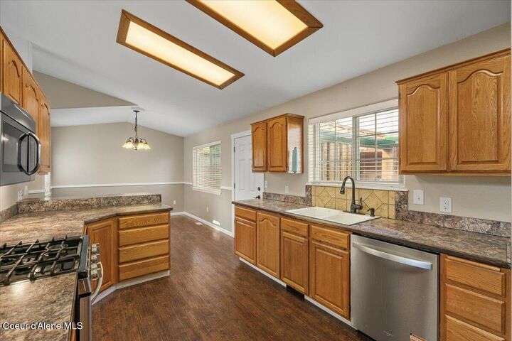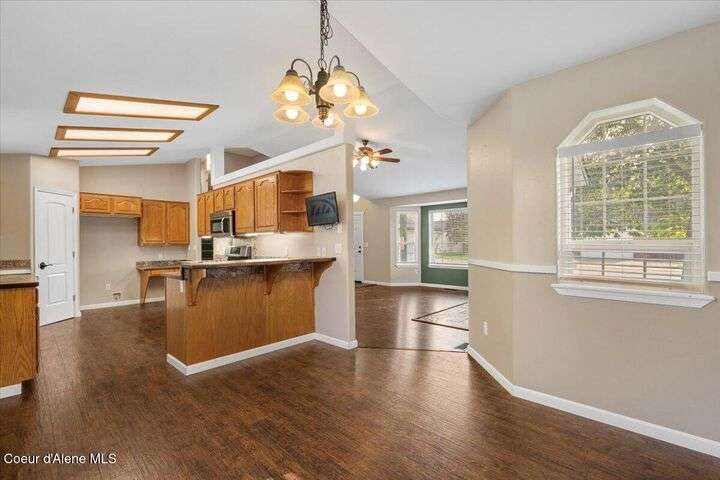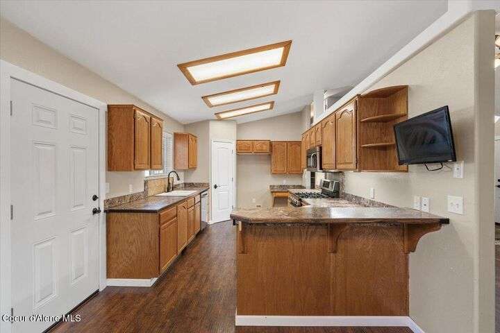 Welcome to Rathdrum living at its best—centrally located near schools, shopping, and dining! This spacious multi-level home features 5+ bedrooms, 3 baths, a bright living room, separate kitchen and dining, plus a family room and a versatile great room, offering plenty of space for everyone. Thoughtful updates throughout create a warm, move-in-ready feel. The oversized heated garage, complete with RV parking outside, provides ample space for vehicles, storage, or your dream workshop. Step outside to a private backyard oasis with full landscaping, sprinklers, an expansive deck ready for a hot tub, and a large patio perfect for barbecues and gatherings. Designed for comfort, entertaining, and everyday living—this home truly has it all!