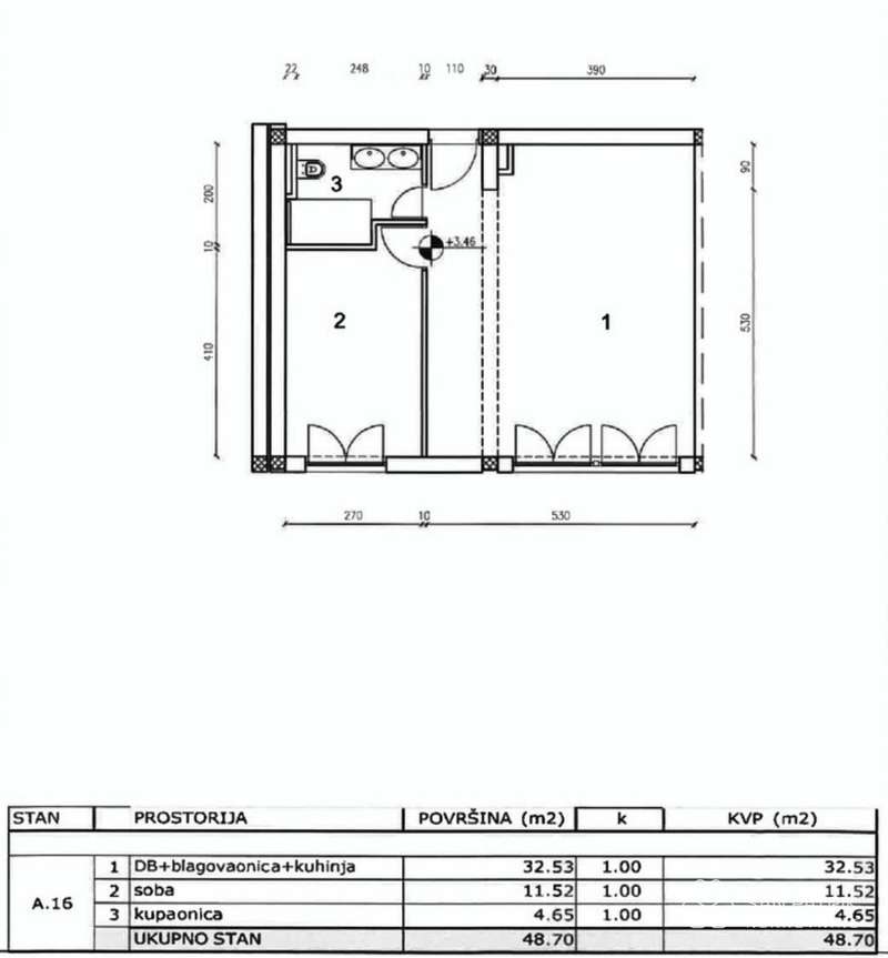 Apartment S-16 - 1st floor - living area 48.70 m2 (1 bedroom + 1 bathroom) + garage parking space; net accounting area 56.20 m2 = 350,000 EUR