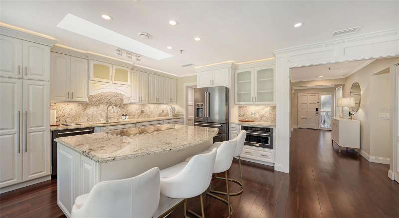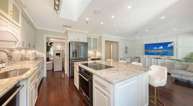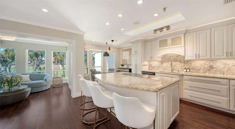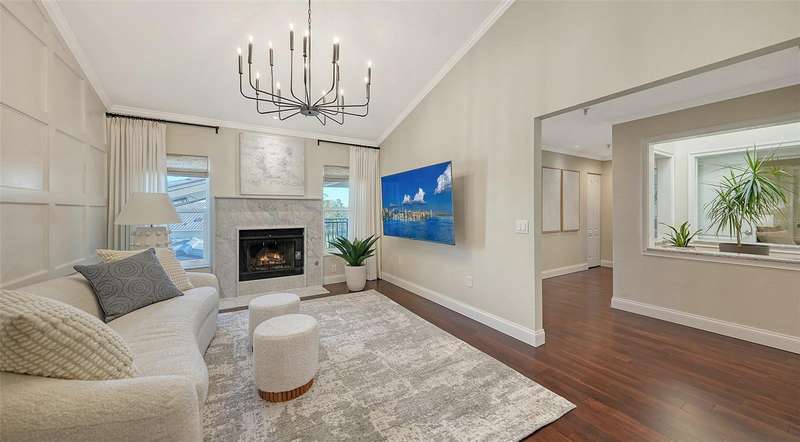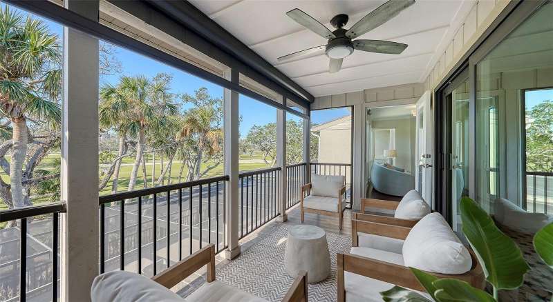 Discover this exquisitely renovated condo with high-impact windows and sliders that lives like a single-family home! This fully furnished 3-bedroom, 2-bath home in the friendly “Harbour Oaks” section of the prestigious Bay Isles community on Longboat Key comes with a private 2 car garage. With just under 2,000 square feet of living space, this residence perfectly combines luxury, comfort, and convenience. This home has been meticulously designed with high-end finishes by an interior designer, offering a sophisticated aesthetic throughout, featuring custom wood paneling, recessed lighting, engineered wood floors, Stark wool carpet in the primary bedroom, and custom window treatments. The 2020 upgraded kitchen features premium stainless-steel appliances and an induction range. Additional thoughtful design elements include cove lighting in the dining room and a wood-burning fireplace with custom Carrera Marble surround. The lanai with a motorized no-see-um bug screen overlooks the Longboat Key Club Harbourside Golf Course, providing breathtaking and comfortable sunset views framed by beautiful trees and lush greenery. For safety, durability and financial peace of mind, this gorgeous second floor residence features recently upgraded high-impact sliders and windows, plus community-wide new roofing and siding. Located in the gated Bay Isles community with 24/7 security, this home is within walking or biking distance to the private and newly renovated Bay Isles Beach Club, the Longboat Key Club Moorings Marina and Portofino restaurant, the Longboat Key Club Pickleball and Tennis Courts, Publix, CVS, as well as to the new Longboat Key St. Regis, which offers exceptional dining options and the vibrant St. Regis Monkey Bar, now open to the public. This remarkable turn-key property with a beautiful community pool and spa offers a rare opportunity to embrace the unparalleled Longboat Key lifestyle. Don’t miss the chance to make it your own.