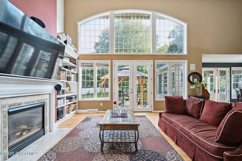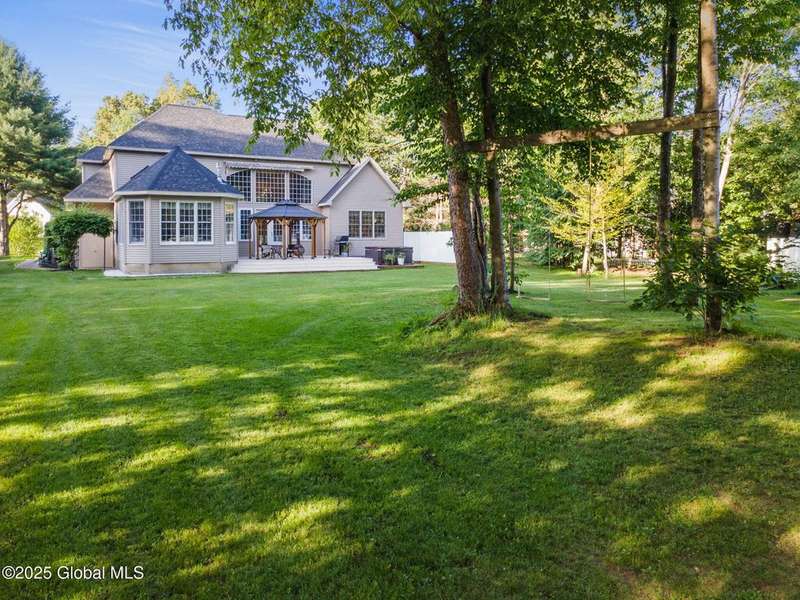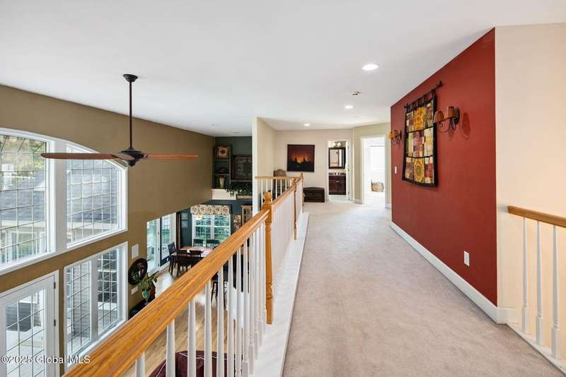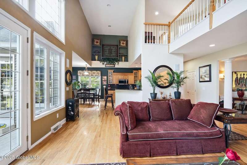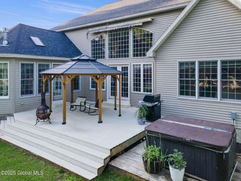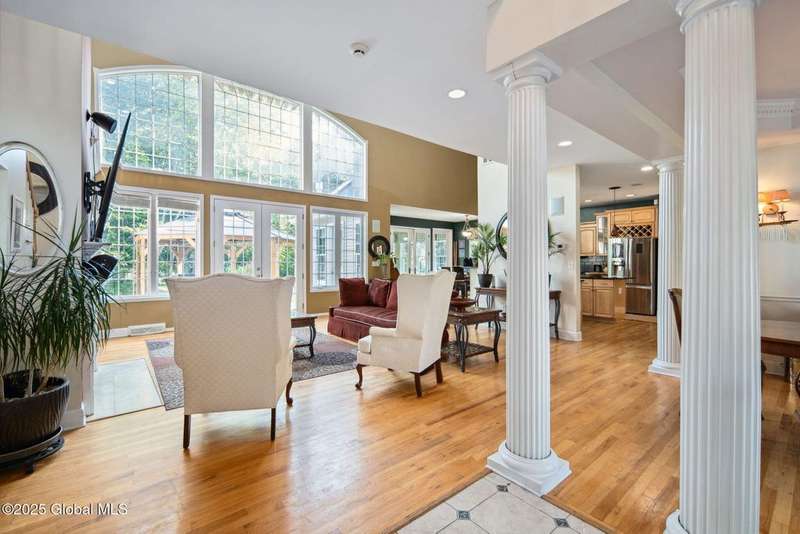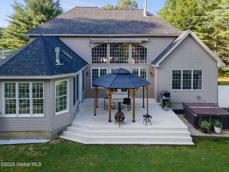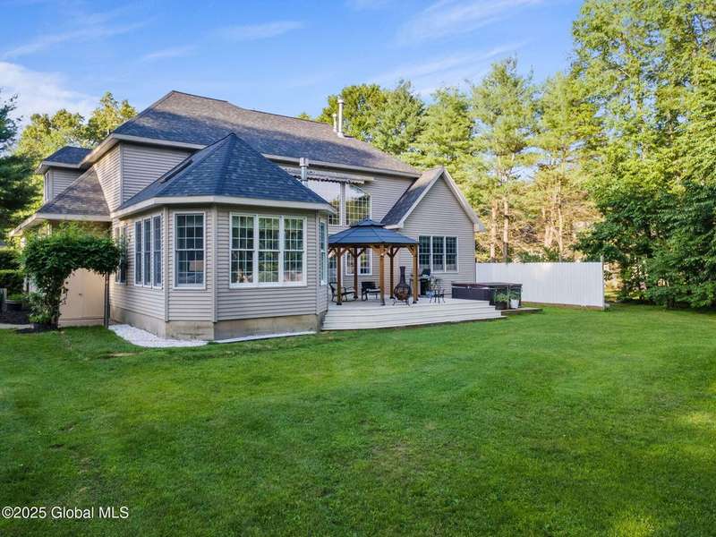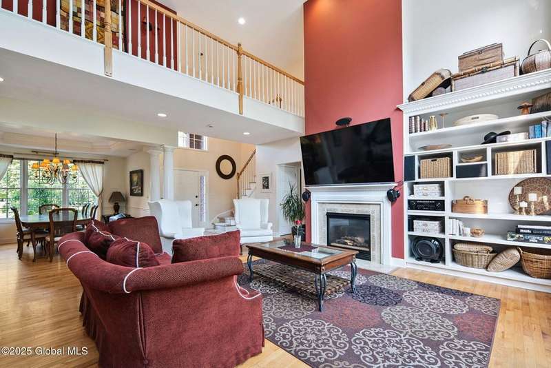 48 HOUR CONTINGENCY- 3000 sqft of living space! Grand foyer w/tile FLR. HDWD floors in G.R., DR & Kit. Great floor plan, primary 1st FL BR w/designer primary bath w/separate whirlpool tub & shower. 2-Story Great Room w/zooming ceiling & full back wall of windows overlooking a newer pergola and peaceful yard. Tiled bBreakfast area adjacent to gourmet Kitchen w/deluxe cabinetry. W/I pantry for lots of storage, beyond Kitchen is a cozy Sun Porch adding much light for your enjoyment. Loft upstairs overlooks Great Room, good reading or computer area.Two nice sized bedrooms w/full bath. Finished bsmt. w/pool table & game tables along w/bar, great for man cave or entmt (1022sqft). Oversized storage area on utility side of basement. Lots of shrubbery, flowers, and a variety of fruit trees on property. Exclusions- TV in Great Room and hot tub in rear yard. Newer roof. A must see home in a desirable neighborhood.