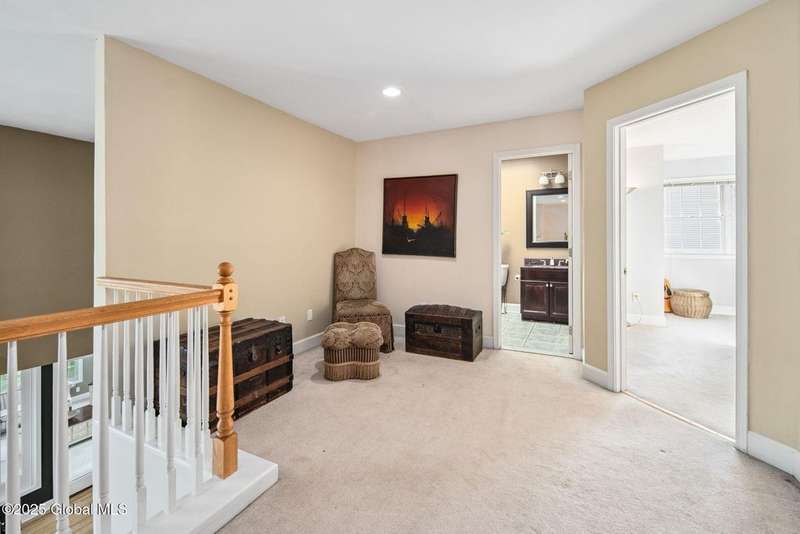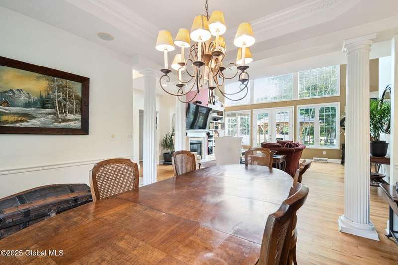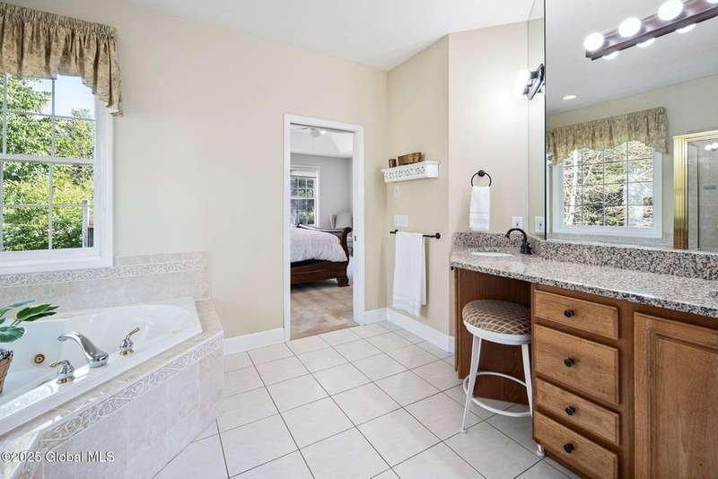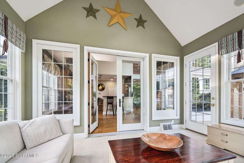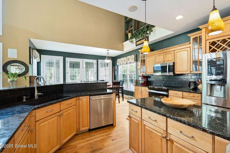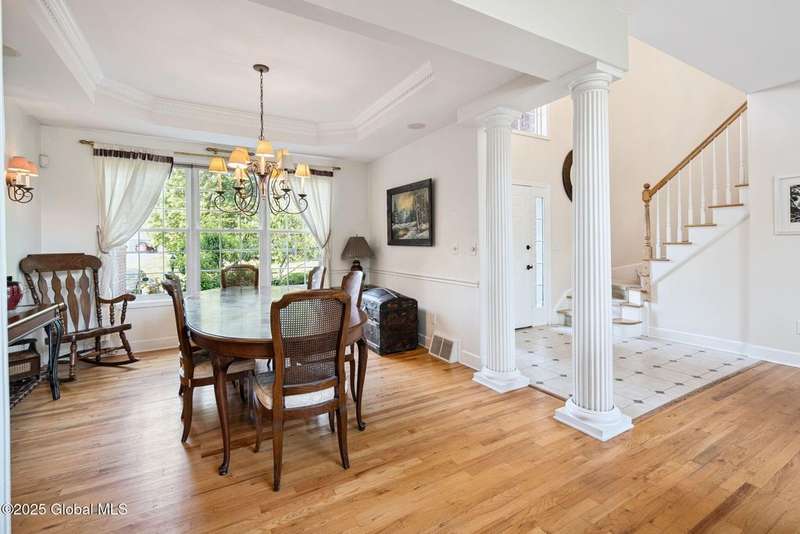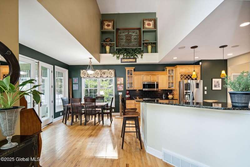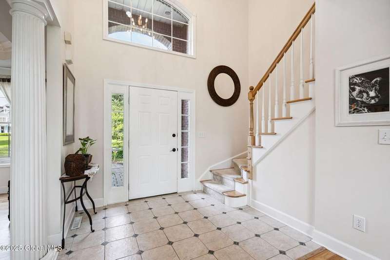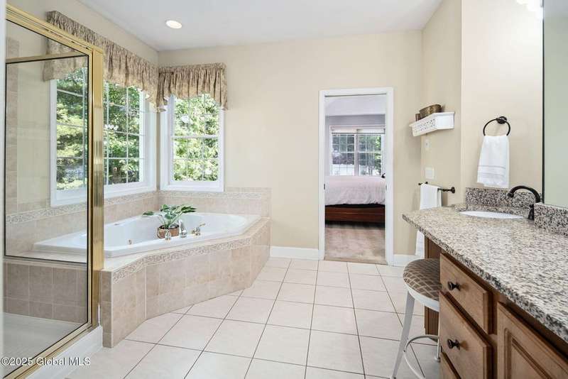 48 HOUR CONTINGENCY- 3000 sqft of living space! Grand foyer w/tile FLR. HDWD floors in G.R., DR & Kit. Great floor plan, primary 1st FL BR w/designer primary bath w/separate whirlpool tub & shower. 2-Story Great Room w/zooming ceiling & full back wall of windows overlooking a newer pergola and peaceful yard. Tiled bBreakfast area adjacent to gourmet Kitchen w/deluxe cabinetry. W/I pantry for lots of storage, beyond Kitchen is a cozy Sun Porch adding much light for your enjoyment. Loft upstairs overlooks Great Room, good reading or computer area.Two nice sized bedrooms w/full bath. Finished bsmt. w/pool table & game tables along w/bar, great for man cave or entmt (1022sqft). Oversized storage area on utility side of basement. Lots of shrubbery, flowers, and a variety of fruit trees on property. Exclusions- TV in Great Room and hot tub in rear yard. Newer roof. A must see home in a desirable neighborhood.