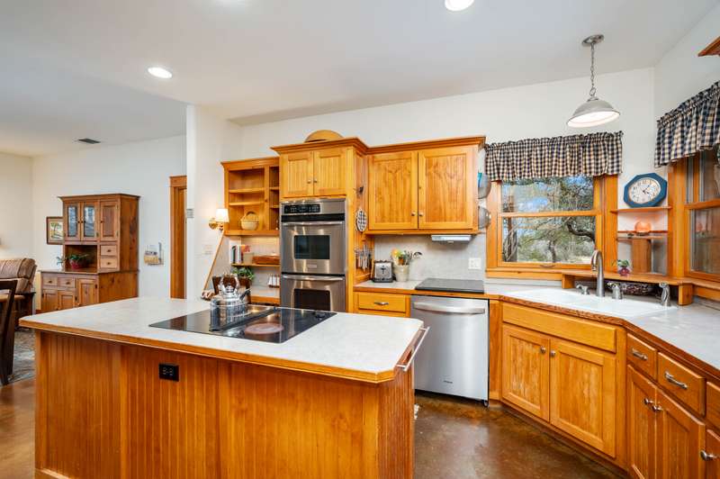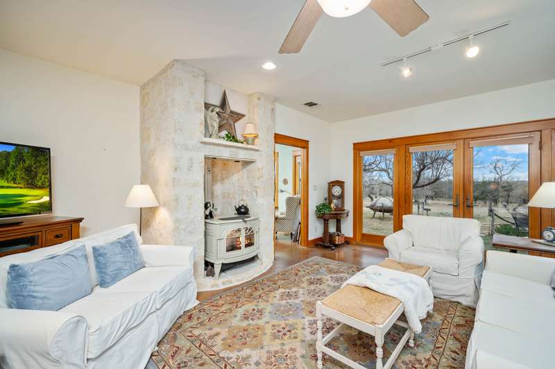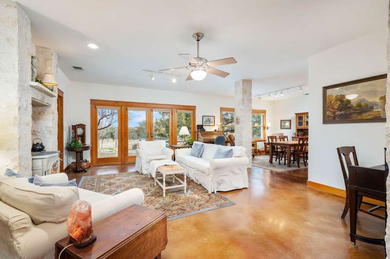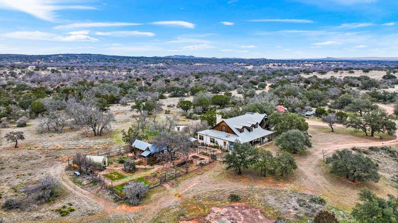 Nestled in the heart of Enchanted Vista, this beautiful 61.54-acre ranch stands as a testament to the beauty and solitude of the Texas Hill Country. Located just 23 miles north of Fredericksburg and a mere 2 miles from Enchanted Rock, it offers the perfect blend of seclusion and convenience, making it an ideal spot for those looking to escape the hustle without straying far from civilization. The land itself is a sight to behold, with gently rolling hills dotted with mature Live Oaks, Texas Persimmon, Juniper and other native foliage, providing not just a haven for game like whitetail deer, turkey, and axis; but a picturesque backdrop that defines the area. The presence of minimal hogs ensures the tranquility of the land is preserved. It's a canvas of natural beauty, with scenic vistas that stretch towards the horizon, including Enchanted Rock. At the heart of the property sits a charming 2,800 sq. ft. custom ranch house, built on a bluff to capture awe-inspiring views of the surrounding landscape. Beside the house lies an expansive, fenced garden, a beacon of self-sufficiency adorned with fruit trees, plentiful beds, a greenhouse, and a workshop featuring a half bath for those sun-soaked days of labor. Nearby, a charming chicken coop and rabbit hutch enrich the setting, offering fresh produce and a taste of pastoral bliss. Beyond, a tranquil pond nestled behind the home provides a perfect haven for reflection or a peaceful afternoon angling. Supporting structures feature a detached two-car garage with a 550 sq.ft. living space above, as well as a vital water well for reliable household and agricultural water supply. Currently serving as a primary residence, this property holds the potential to be more than just a home, offering a seamless transition for those desiring a weekend retreat in the stunning Texas Hill Country. It stands as an inviting option for anyone in search of a secluded haven or a gathering spot for friends and family, providing a rare mix of privacy, scenic beauty, and accessibility. - 11/10/2025 3:15:28 AM