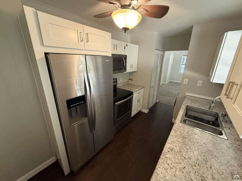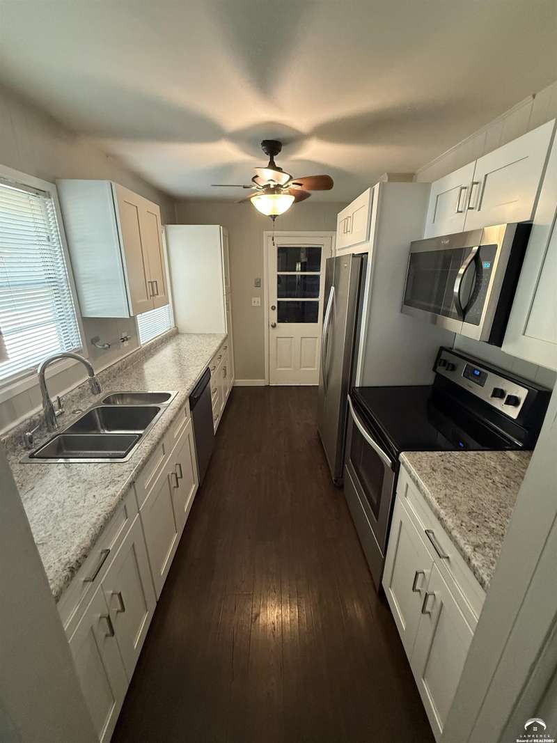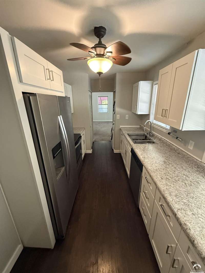 Take a look at this recent (almost entirely!) remodeled ranch-style, one level home. Updates include a gutted kitchen (newer countertops, newer kitchen cabinets, stainless steel appliances, added pantry) and gutted bathroom! Plus newer doors, newer carpet, newer concrete patio. Newer stackable Samsung washer and dryer (that stays)! The garage is extra deep for storage and a newer garage door opener has been installed. Huge fenced backyard. Great central location less than half a mile from Sunset Hill Elementary, West Middle School, Centennial Park. This home is great opportunity for a real estate investment or first time home buyers!