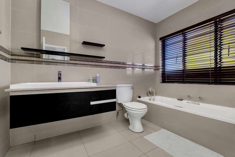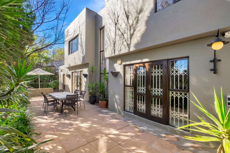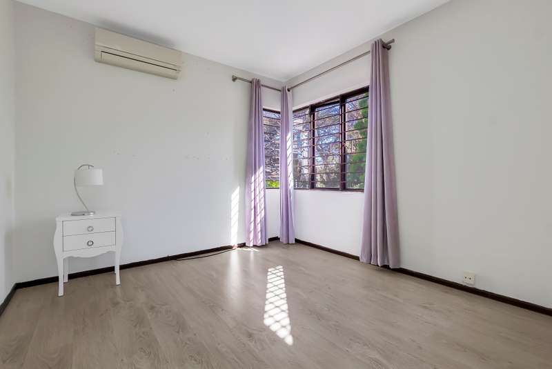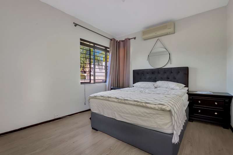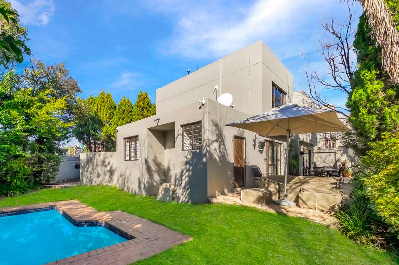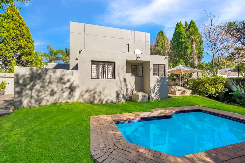3 bed, 2.5 bath spacious furnished double storey cluster in a well maintained complex in good condition boasting 2 large tiled receptions, one with a sliding door leading onto a large open patio facing a spacious garden complete with a sparkling pool. Attractive semi open granite kitchen with good cupboards, standard hob, single fridge, dishwasher and washing machine, all bedrooms are upstairs with lots of cupboard space, aircons and wooden laminate floors, main ensuite full, downstairs guest cloakroom, staff quarters, double auto garage, alarm and electric fence. Situated close to desirable private schools including Redhill, the French School, Crawford, shopping centres, restaurants and within a short drive to the Sandton CBD. Served by a good network including easy access to and from the N1, N3 and M1. Available 1st November