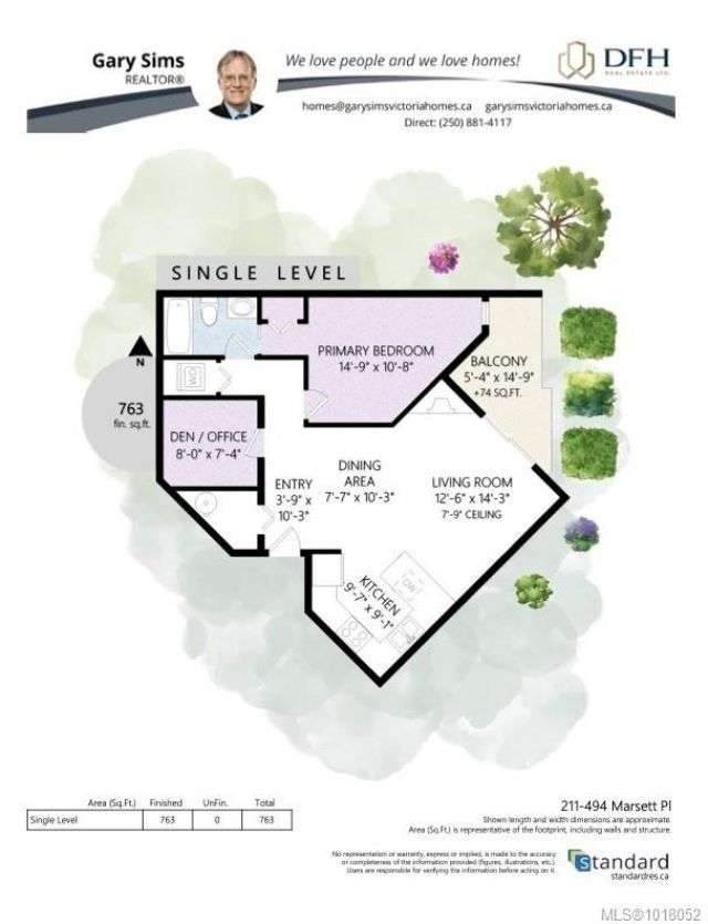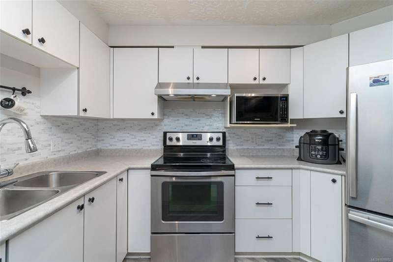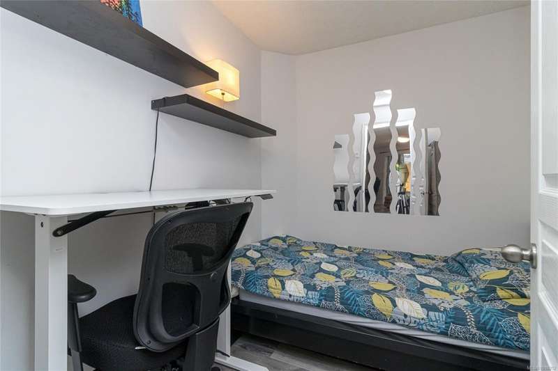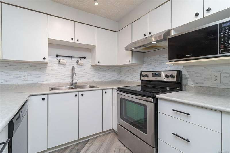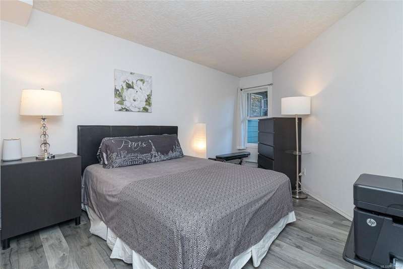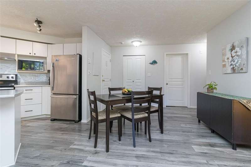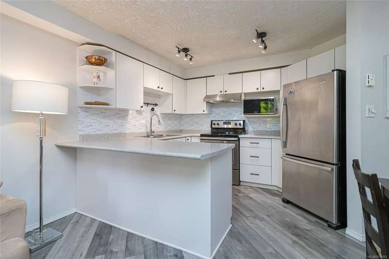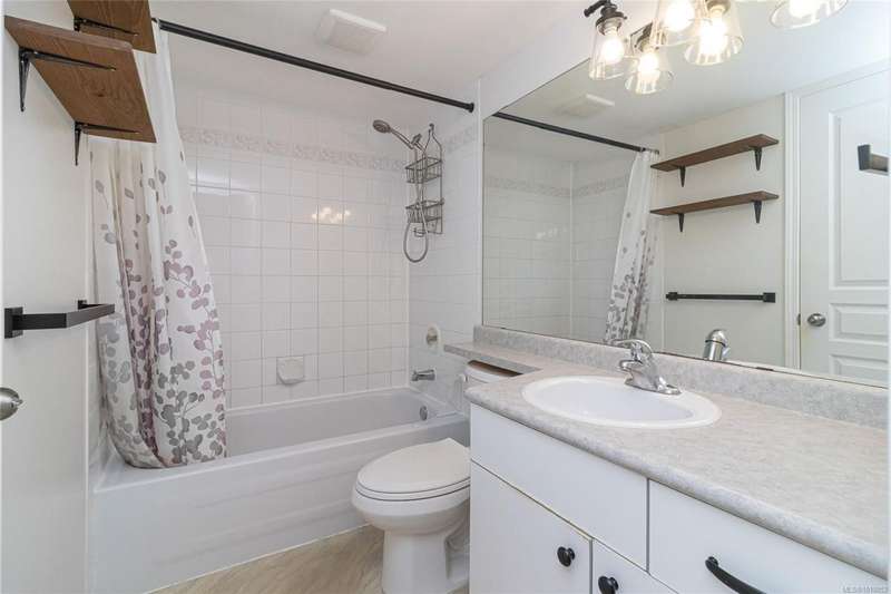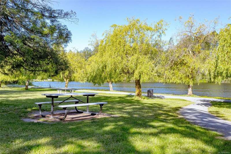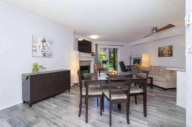 This delightful one-bedroom PLUS DEN condo comes with a generous balcony overlooking a lush garden of beautiful, mature trees. With its open concept layout, this spacious and quiet unit includes insuite laundry, a cheater ensuite bathroom, and a cozy gas fireplace with gas included in the low strata fees. The Park Royal Place is Pet-Friendly, allows BBQs, and this unit comes with both a Parking Space and a handy downstairs Storage Unit. Very conveniently located, it is just a 2-minute drive to Saanich Commonwealth Place with its pools, 5-mins. to peaceful Beaver/Elk Lake trails, 4 mins. to Broadmead Village Shopping Centre, about 18 mins. to either downtown Victoria or to the Airport, and about 20 mins. to the Ferry Terminal. What an ideal place to live!