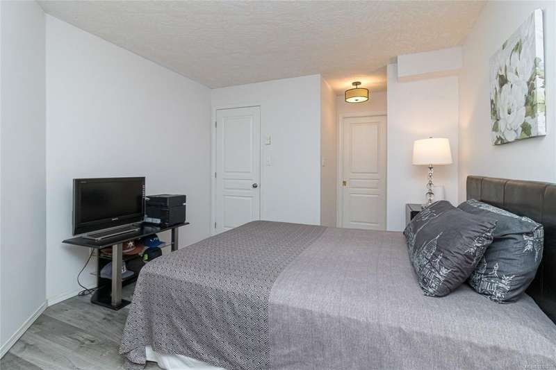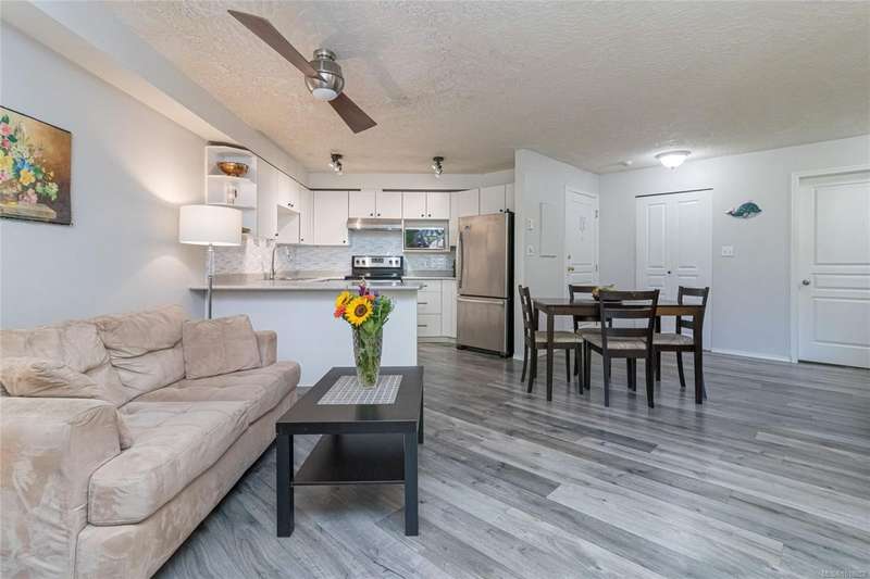 OPEN HOUSE SATURDAY OCT. 25th: 1-3 PM. This delightful one-bedroom PLUS DEN condo comes with a generous balcony overlooking a lush garden of beautiful, mature trees. With its open concept layout, this spacious and quiet unit includes insuite laundry, a cheater ensuite bathroom, and a cozy gas fireplace with gas included in the low strata fees. The Park Royal Place is Pet-Friendly, allows BBQs, and this unit comes with both a Parking Space and a handy downstairs Storage Unit. Very conveniently located, it is just a 2-minute drive to Saanich Commonwealth Place with its pools, 5-mins. to peaceful Beaver/Elk Lake trails, 4 mins. to Broadmead Village Shopping Centre, about 18 mins. to either downtown Victoria or to the Airport, and about 20 mins. to the Ferry Terminal. What an ideal place to live!