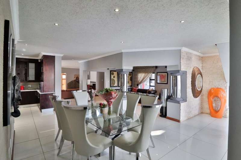 Modern and Spacious Family Home Spacious open plan living areas links perfectly with the modern kitchen, equipped with gas and electric hob. A gas fireplace sets the perfect ambiance as you enter the entertainment area with built-in braai. Stacking doors gives you access to the patio and pool area. As you move upstairs, a separate tv room is available - equipped with a fireplace and kitchenette - the perfect place for spending quality time with the family. All the bedrooms are spacious and boasts en-suite bathrooms. The property also offers separate domestic quarters and parking is catered for with two double garages. Live here and enjoy the freedom and wide open spaces of this Estate with a private school on your doorstep.