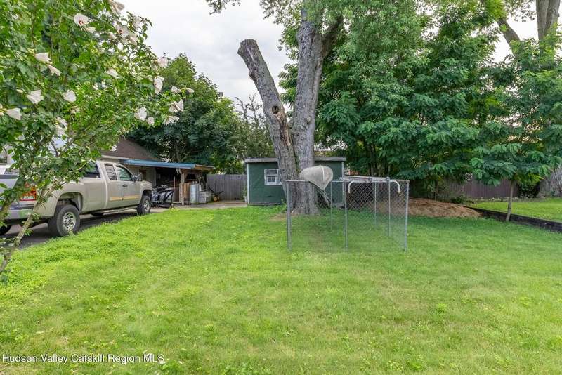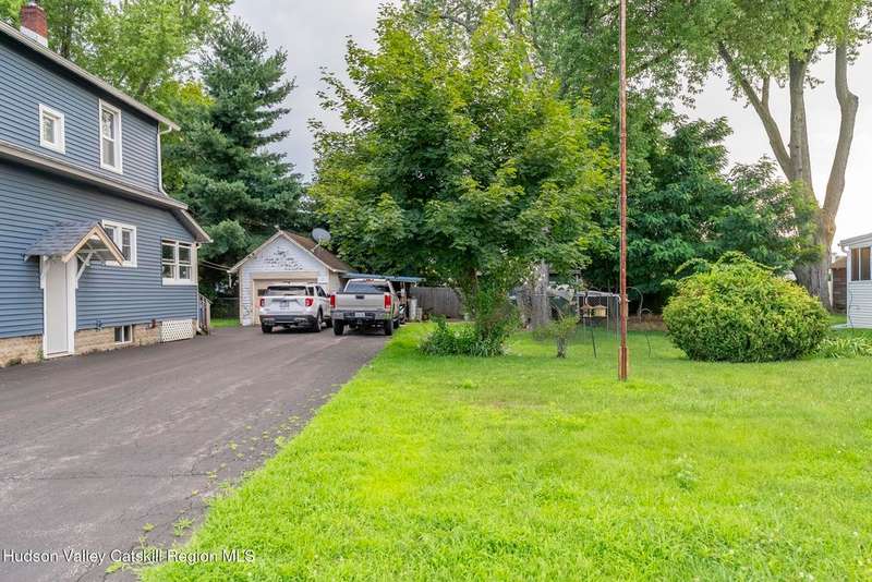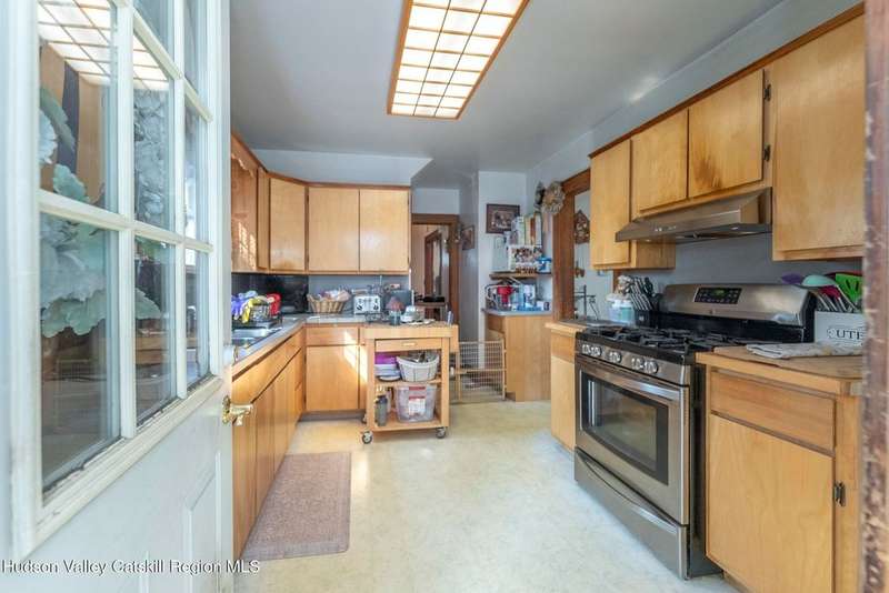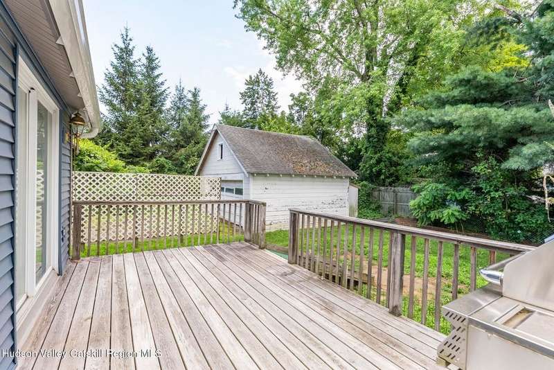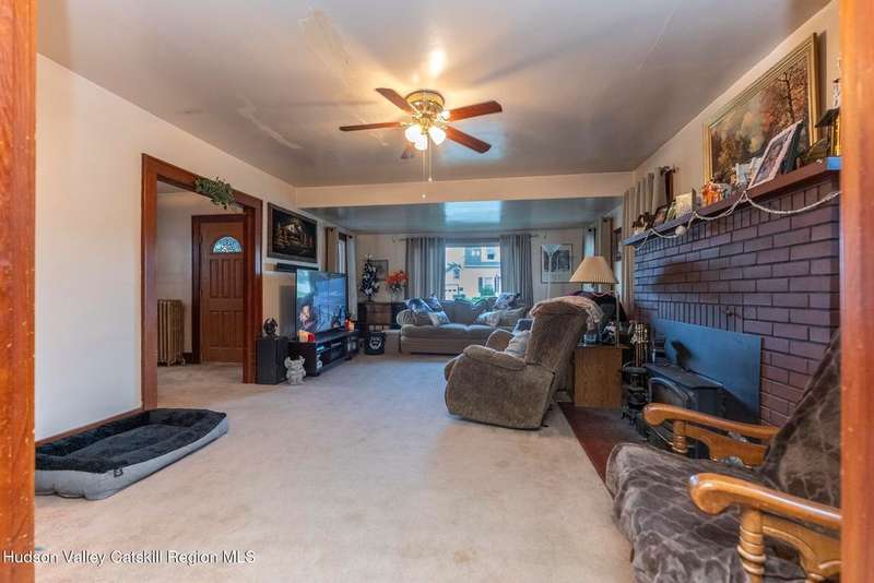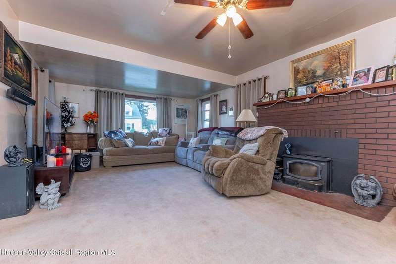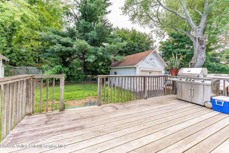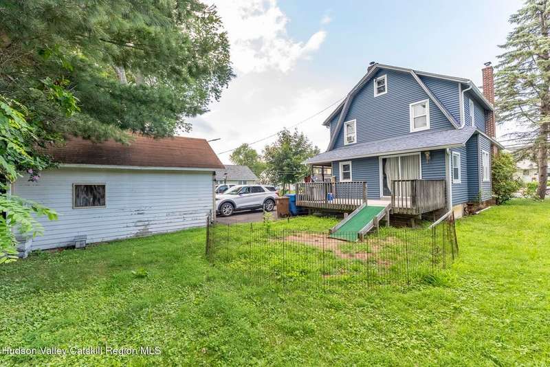Wonderful Opportunity in the Heart of Kingston!Centrally located with unbeatable convenience to Uptown Kingston, the Town of Ulster, Adams Fairacre Farms, Dunkin', and nearby hiking and biking trails?this charming home is the perfect blend of comfort and accessibility.Step into the spacious and inviting front entry that leads to an impressive 21.7 x 13.3 living room, anchored by a beautiful brick fireplace with a wood stove insert that warms the entire home. The large formal dining room boasts a wall of windows, flooding the space with natural light and creating an ideal setting for gatherings.A first-floor office opens to expansive decking, perfect for outdoor entertaining, dining, or simply relaxing. The well-sized kitchen also provides direct access to the deck, making indoor-outdoor living a breeze.Upstairs, you'll find three generously proportioned bedrooms and a full bath. Thanks to the dormered roofline, each bedroom offers spacious comfort and architectural charm. A full basement with a second wood stove provides even more cozy potential on cold winter nights.Included in the sale is an additional adjoining lot, creating an extra-large side yard and nearly a quarter-acre of property?perfect for gardening, recreation, or expansion. Plus, there's additional outdoor storage on site.Don't miss your chance to own this versatile and conveniently located property in one of Kingston's most desirable areas!