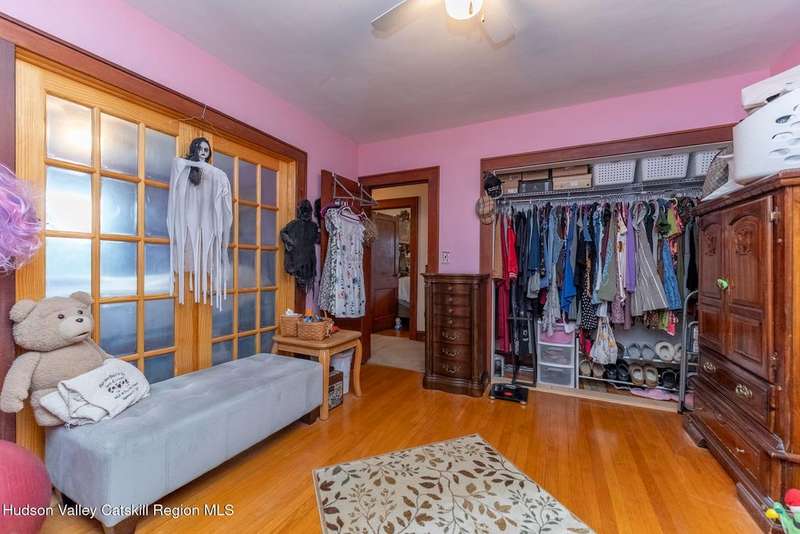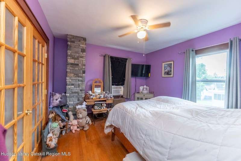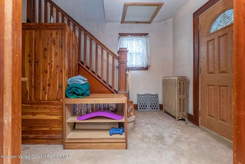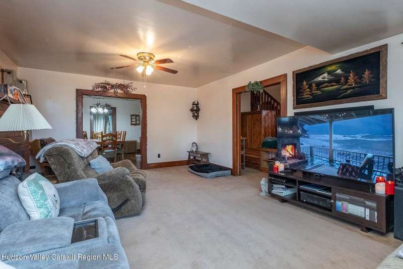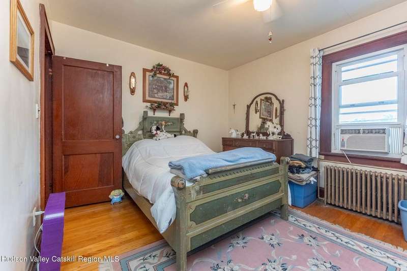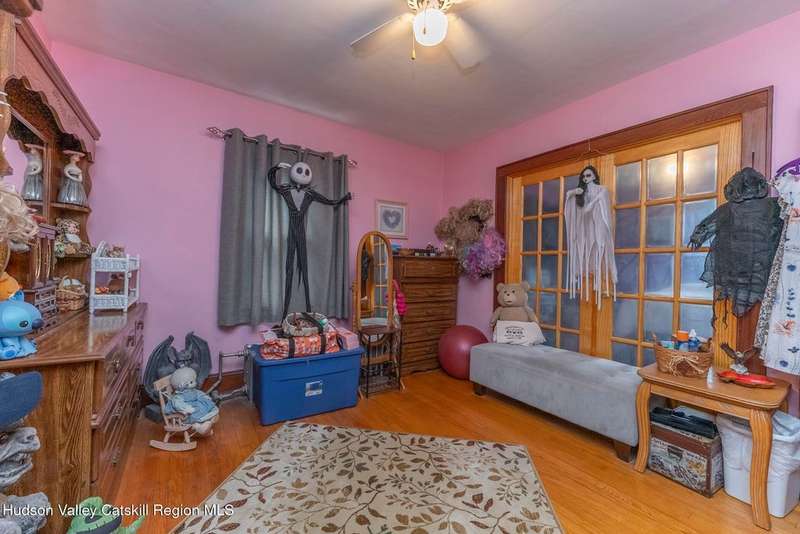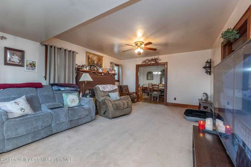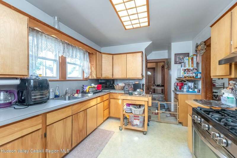 Wonderful Opportunity in the Heart of Kingston!Centrally located with unbeatable convenience to Uptown Kingston, the Town of Ulster, Adams Fairacre Farms, Dunkin', and nearby hiking and biking trails?this charming home is the perfect blend of comfort and accessibility.Step into the spacious and inviting front entry that leads to an impressive 21.7 x 13.3 living room, anchored by a beautiful brick fireplace with a wood stove insert that warms the entire home. The large formal dining room boasts a wall of windows, flooding the space with natural light and creating an ideal setting for gatherings.A first-floor office opens to expansive decking, perfect for outdoor entertaining, dining, or simply relaxing. The well-sized kitchen also provides direct access to the deck, making indoor-outdoor living a breeze.Upstairs, you'll find three generously proportioned bedrooms and a full bath. Thanks to the dormered roofline, each bedroom offers spacious comfort and architectural charm. A full basement with a second wood stove provides even more cozy potential on cold winter nights.Included in the sale is an additional adjoining lot, creating an extra-large side yard and nearly a quarter-acre of property?perfect for gardening, recreation, or expansion. Plus, there's additional outdoor storage on site.Don't miss your chance to own this versatile and conveniently located property in one of Kingston's most desirable areas!