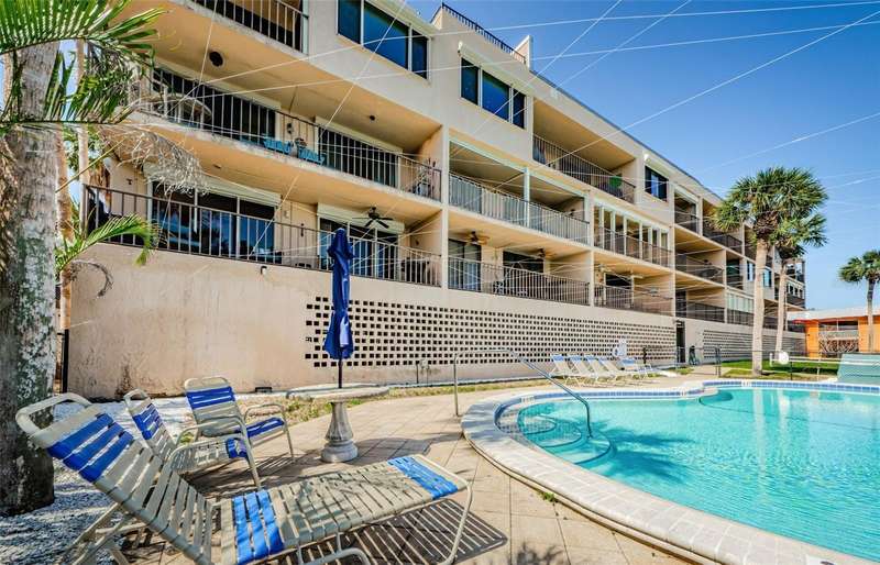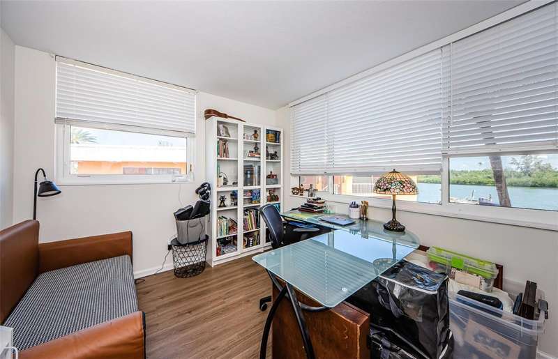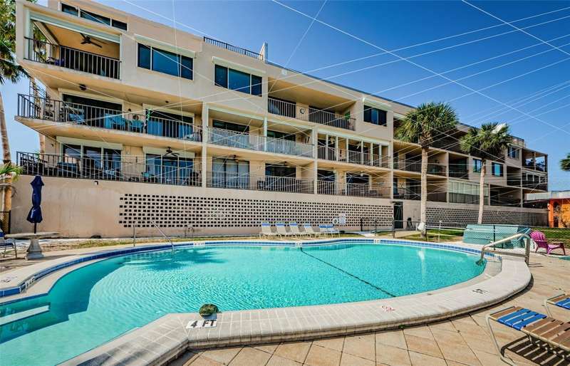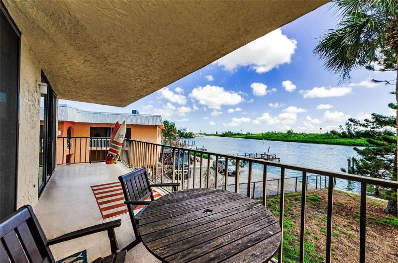 Welcome to your dream coastal retreat in the heart of Redington Shores. This beautifully updated 3-bedroom, 2-bath corner condo with an additional den/office offers the perfect blend of style, comfort, and location—just steps from the sugar-white sands of the Gulf beaches. Perched above the Intracoastal Waterway, the home boasts sweeping water views and a spacious private balcony, ideal for enjoying peaceful sunrises and watching boats glide by. Inside, natural light pours through brand-new windows into the open-concept living space, highlighting the sleek new flooring, thoughtfully redesigned layout, and high-end finishes throughout. The stylishly updated kitchen features crisp white cabinetry and a brand-new stove, ready for both everyday meals and entertaining guests. A new washer and dryer add to the home's overall ease and functionality. Every detail has been carefully curated, from custom linen curtains on the new sliding glass doors to plantation shutters on the picture window, and electric black-out blinds in the primary suite for restful nights. The additional den/office provides a versatile space for working from home or 4th bedroom to accommodate guests. Boaters will love the brand-new (2024) private dock with lift, offering immediate access to the Intracoastal and quick routes to favorite waterfront spots like Salt Rock Grill, Caddy’s, and John’s Pass. When you're not on the water or at the beach, unwind at the community pool or stroll to local gems like the Candy Kitchen and Redington Shores Beach Access Park. The Suncoast Beach Trolley stops right outside the building, making it easy to explore the coast without a car. Additional perks include private under-building parking and plenty of guest parking out front. Whether you're looking for a full-time residence or a luxurious waterfront escape, this condo delivers an exceptional coastal lifestyle. Well-managed building with monthly fees under $800. Owner financing is available with an appropriate down payment, making it even easier to call this piece of paradise your own.