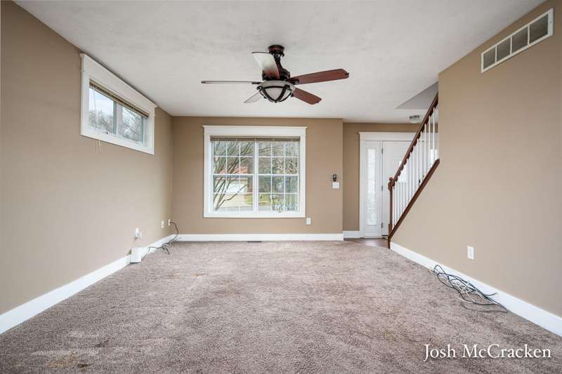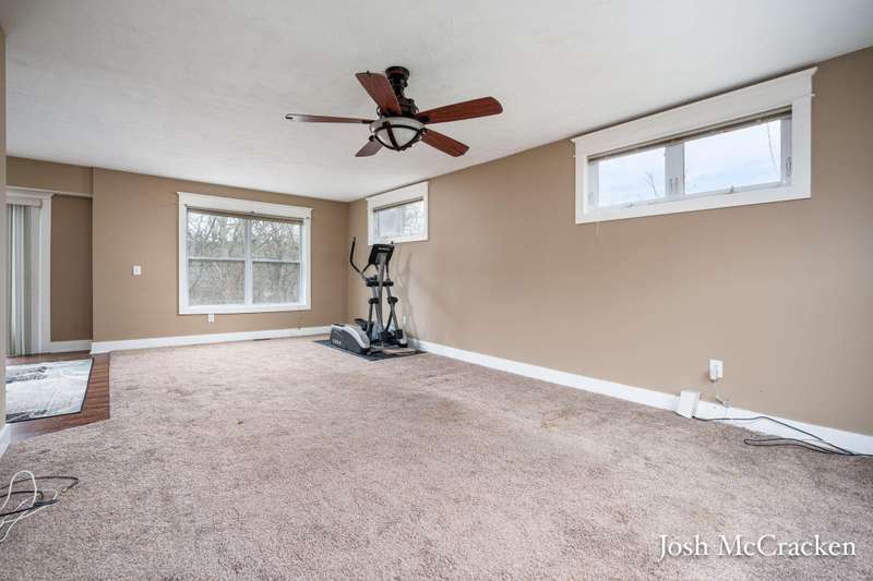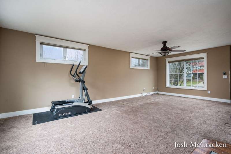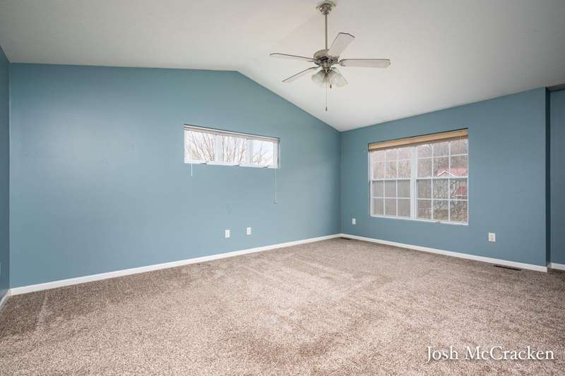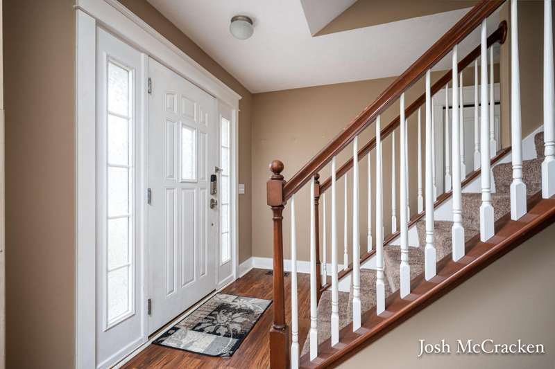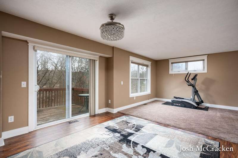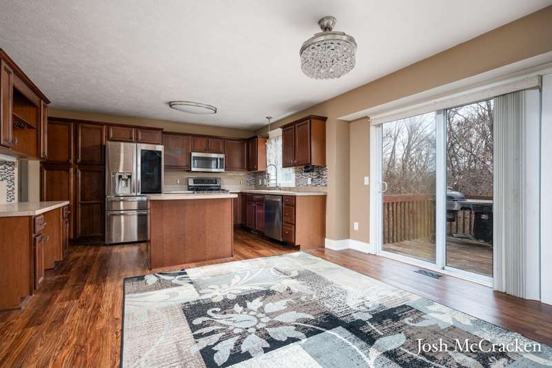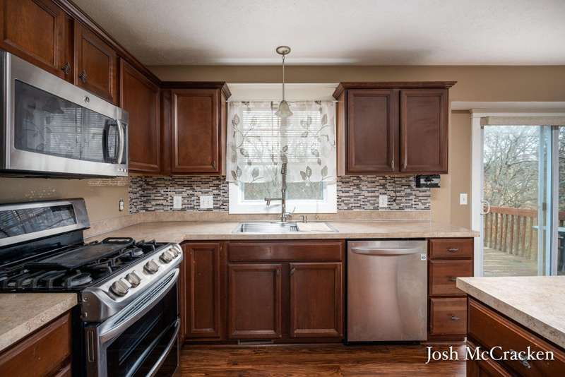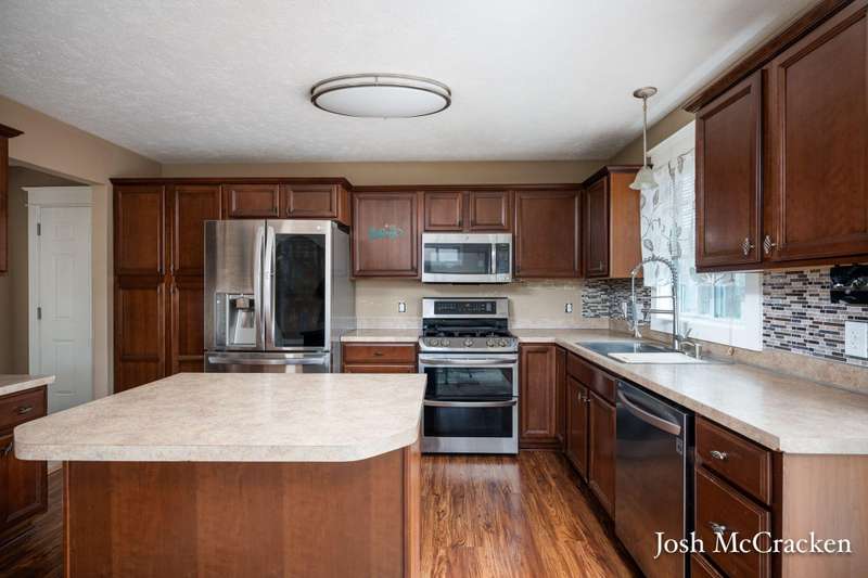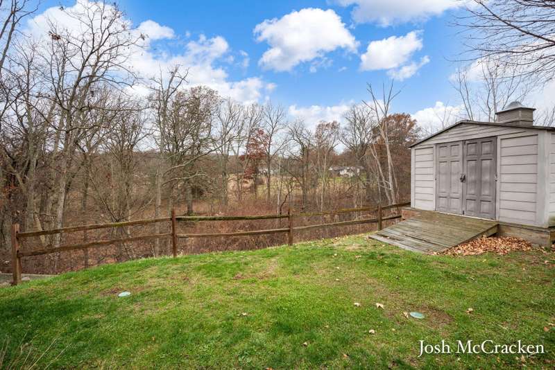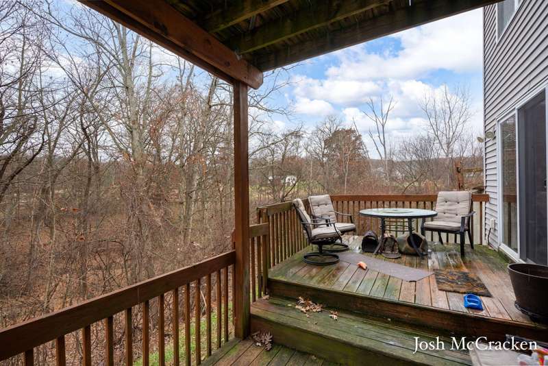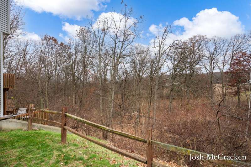 Welcome to 11220 Barnsley Rd SE, Holwerda Builders' original custom show home at the entrance of Whispering Hills. Set on a wooded 0.6-acre lot, this property offers exceptional privacy with beautiful views from the two-level deck and walkout lower level. Inside, the main floor features a spacious kitchen with center island, built-in desk, and easy flow to the dining and living spaces. Main floor laundry adds everyday convenience. Upstairs you'll find three comfortable bedrooms, including a full ensuite with great storage and natural light. The walkout lower level includes a finished fourth bedroom and additional living space that is perfect for a rec room, home office, gym, or hobby space. Additional highlights include natural gas, city water and sewer, central air, and a heated two-stall attached garage. The wooded backyard offers a natural setting while still being just minutes from Lowell schools, parks, and downtown. Move-in ready, thoughtfully designed, and ideally situated. Don't miss this opportunity