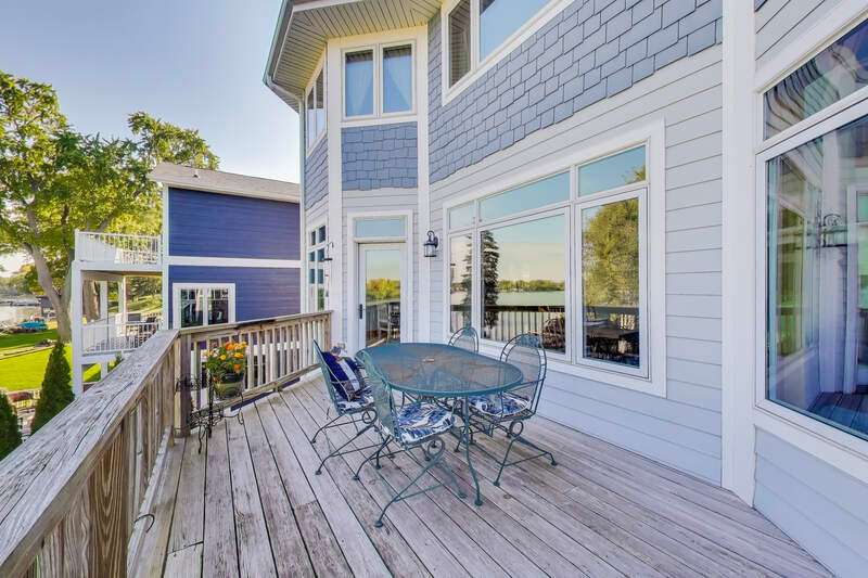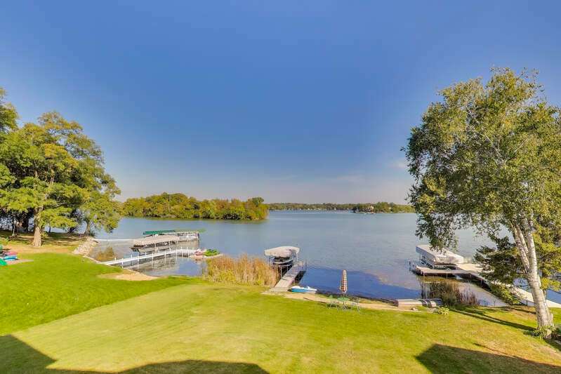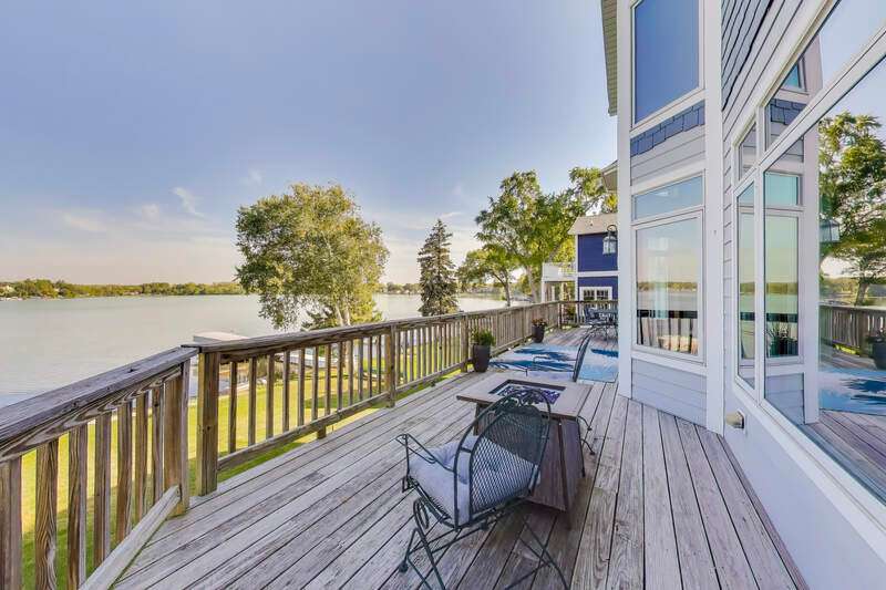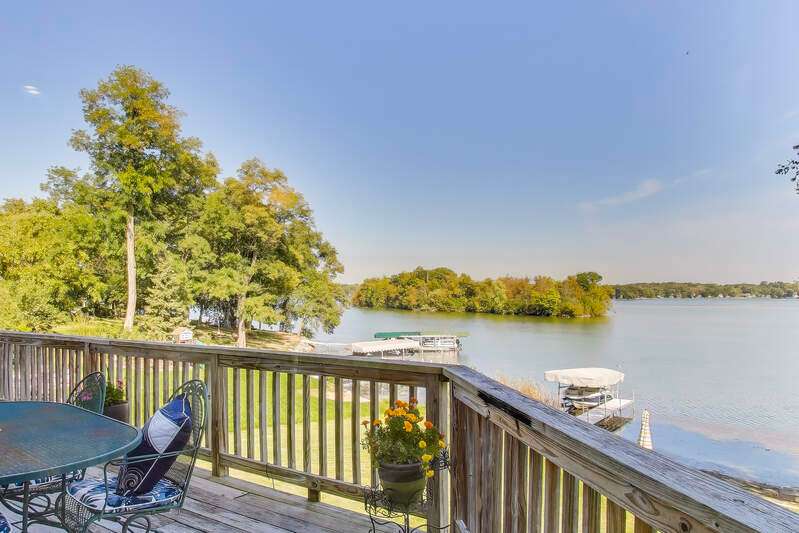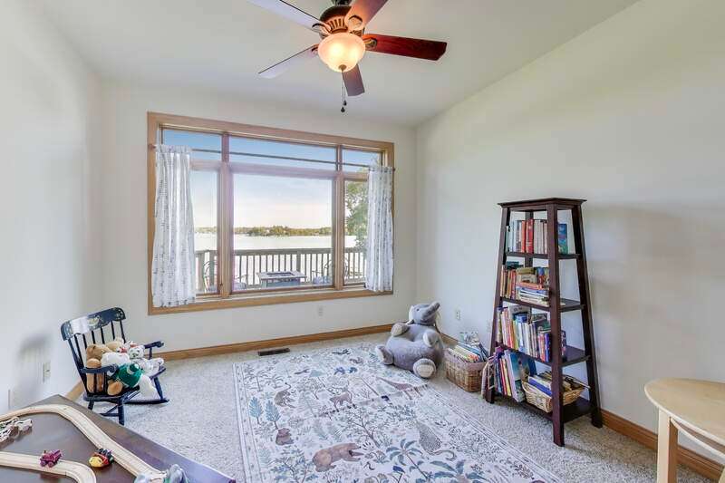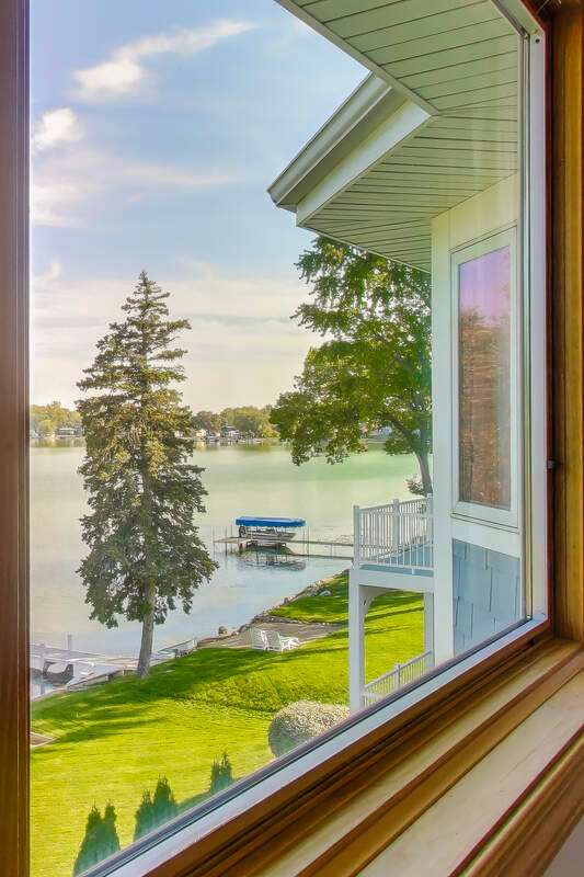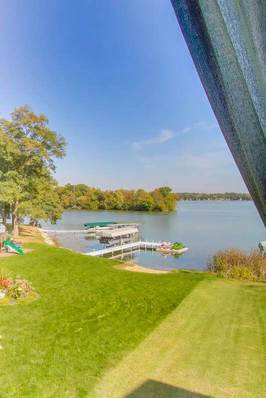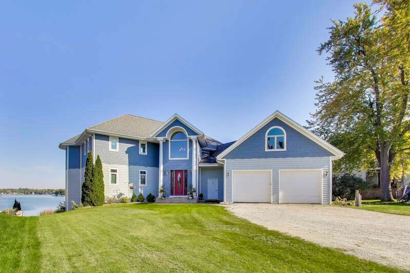 Overlooking the sparkling waters of Browns Lake, this 5-bedroom, 4.5-bath custom two-story home is designed to showcase sweeping views from nearly every room. Inside, open-concept living with vaulted ceilings and a massive kitchen sets the stage for gatherings. Both the first and second floors offer private primary bedrooms, while a huge 3-car attached garage adds convenience. A mostly level front yard gives effortless access to the shoreline, and the walk-out lower level with floor-to-ceiling windows awaits your finishing touch. With 85 feet of prime frontage on a 397-acre, 44-ft-deep full-sport lake, enjoy boating, fishing, and year-round recreation.