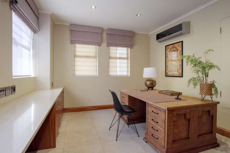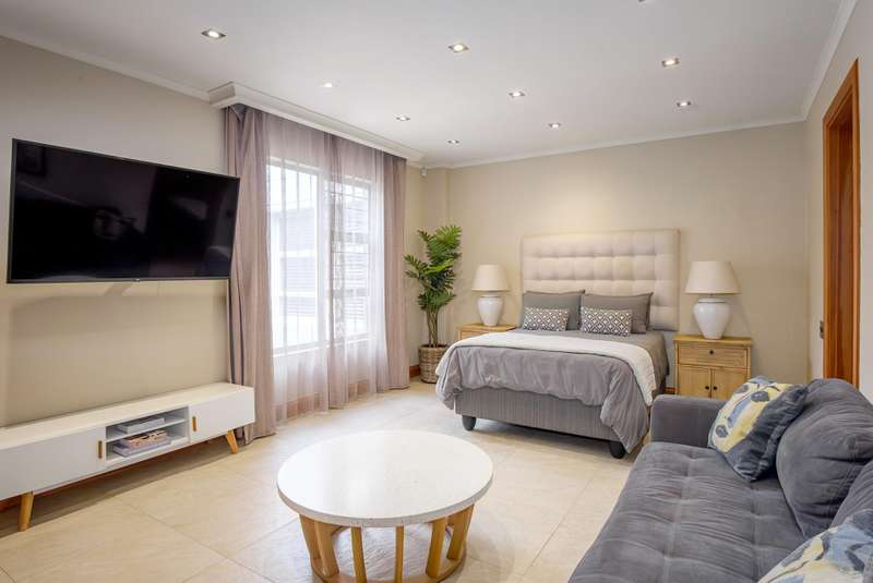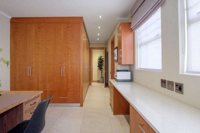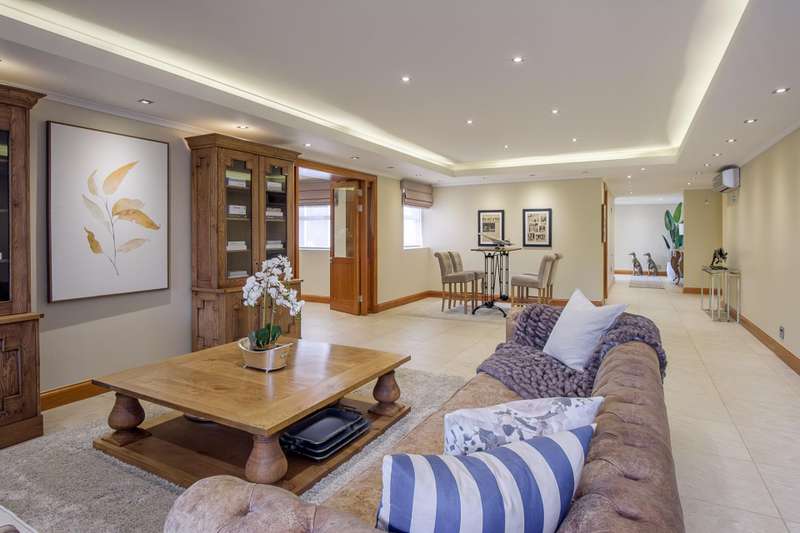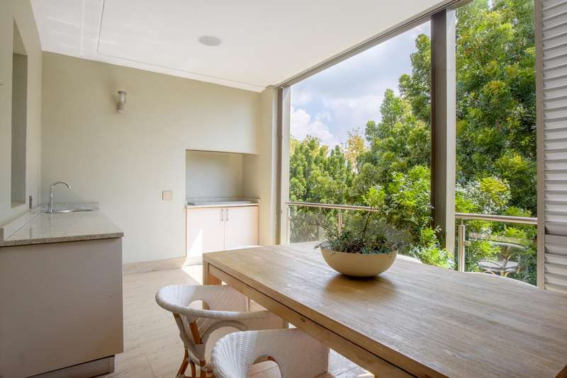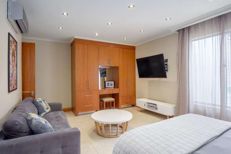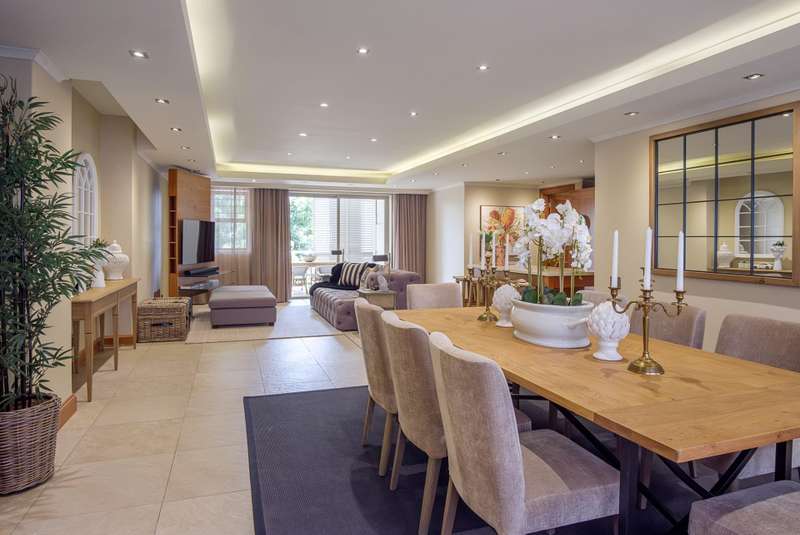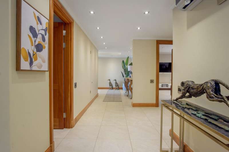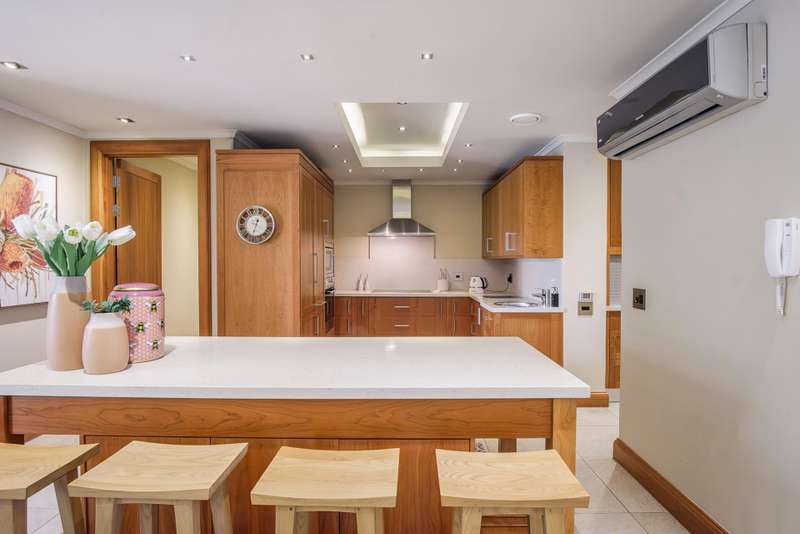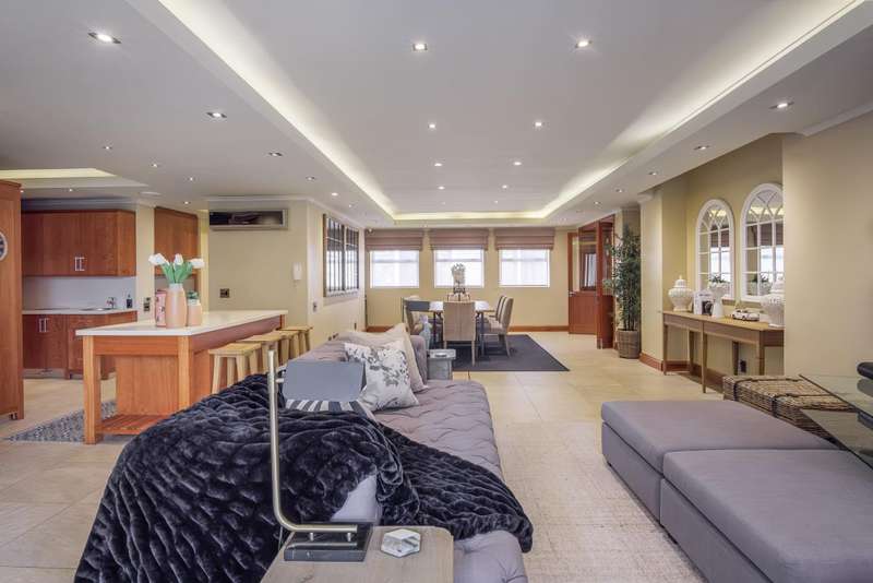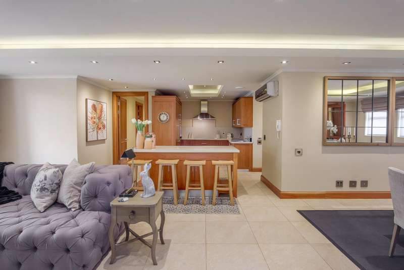 LUXURY PENTHOUSE APARTMENT This spacious and luxurious Brooklyn Stone penthouse apartment provides complete peace of mind in a prime and secure location. The apartment boasts a stylishly designed, modern, open-plan, single-level layout, showcasing high-quality fittings and immaculate finishes throughout. Blinds and curtains are included for your convenience. For the culinary enthusiast, the top-of-the-range bespoke kitchen is a dream come true, featuring solid cherrywood cupboards, marble countertops, and a central island. It is fully equipped with integrated Bosch appliances, including a fridge/freezer, microwave, dishwasher, and a washer/tumble dryer combination. Plus, there's the added convenience of a second chef's kitchen with scullery/laundry. Entertaining is a delight in the perfectly designed open-plan lounge area, which seamlessly flows through sliding doors to the covered patio with a stainless-steel gas Multibraai and a wet bar. The elegant dining room flows to a comfortable TV lounge that opens onto a second covered patio (also fitted with a stainless-steel Multibraai and wet bar). Three luxurious bedrooms come with stunning en-suite bathrooms. The main bedroom is a true sanctuary, featuring its own balcony and a large separate dressing room. Additionally, there's another separate room that offers flexibility as a study, gym, or studio. The exceptional quality continues with aluminium shutters, porcelain tiles, solid wood features, and large windows and sliding glass doors that flood the space with light and enhance the sense of space. Enjoy added comfort with underfloor heating, air conditioning throughout, and an integrated speaker system. This exceptional property also includes the convenience of six underground parking bays and a storeroom. There is strict 24-hour manned security and an elevator from basement parking to the top floor. Enjoy an excellent location, within walking distance to Brooklyn Mall, all while overlooking a quiet street in a gated community. Close to top schools, restaurants, universities and hospitals.