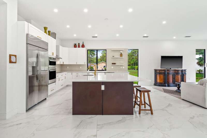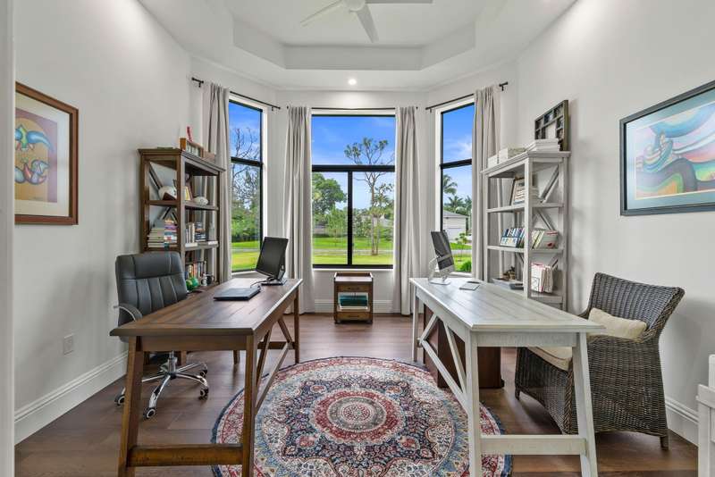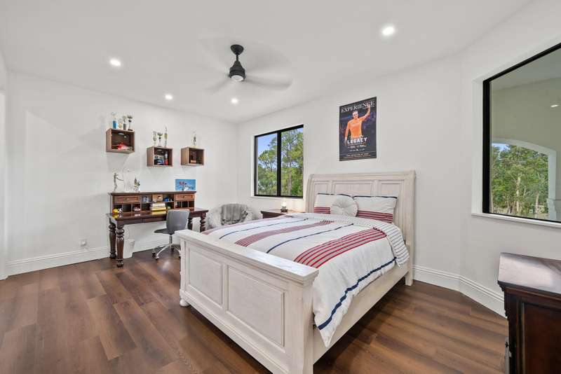 Step into your own private resort compound in Palm Beach Country Estates, a brand new 2024 luxury home designed for both grand entertaining and tranquil everyday living. Now, currently priced $400,000 below appraised value (appraisal in document section of listing) and an unbelievable value for new construction at appx $450/SqFt. Situated on a premier 1+ acre corner lot with city water and a prime location near the main entrance, this custom-built estate offers 5,495 sq. ft. of beautifully crafted interiors, featuring 5 bedrooms plus an office and loft, and 6.5 bathrooms including private en suites and a convenient cabana bath.From its striking architectural elevations to its long private driveway and extra deep 3 car garage, every element of this property exudes scale and