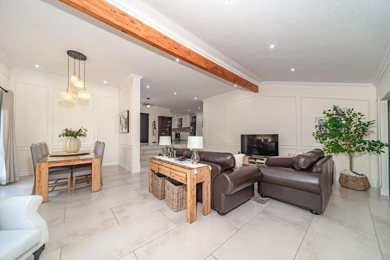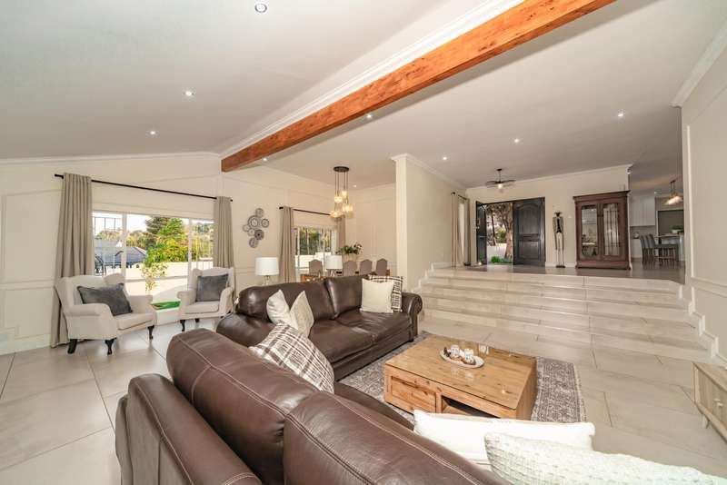 Introducing a one of a kind family home that stole the hearts of thousands on social media and makes its debut this side of the world. Set in the ever sought after Constantia Kloof, this newly renovated home stands head and shoulders above the rest of the homes on market and is sure to tug at many a heart string. As you drive in, you are welcomed by 3 garages and a spacious motor court area and the refreshing sounds of the water feature and the sights of the pond set the tone for the treat that lies ahead. Immediately as you walk through the double wooden doors, a overflowing of natural light, high and slanted ceilings and an exposed beam frame the living areas which are in and of themselves and expression of sheer genius as it pertains to the the scale and design of these spaces. Stacking doors open out to an oversized covered patio complete with a built in braai which is ready to host the biggest of celebrations or family gatherings all whilst offering a clear line of sight to the sunny and character filled outdoors and pool area which sits comfortably on this near 1500m2 corner plot of land. Wrapped in lush and manicured lawns, kids will have the absolute time of their lives running around and soaking up the sun in this forever home. A few steps back into the home, you will find in the heart of this sanctuary, an oversized kitchen which caters for your every need. A center island with an overhang that doubles up as a breakfast bar, a gas stove, subway tiling as a backsplash, brass like handles which make give this a modern country like feel. An offset scullery with ample space for your appliances further compliments this home. A study and 3 additional bedrooms with the main being en-suite and boasting a walk-in closet and an air conditioning unit caps this home. The 2 bathrooms are very modern and add to the home?ÇÖs overall charm and character. Schedule a viewing and let?ÇÖs go fall in love.