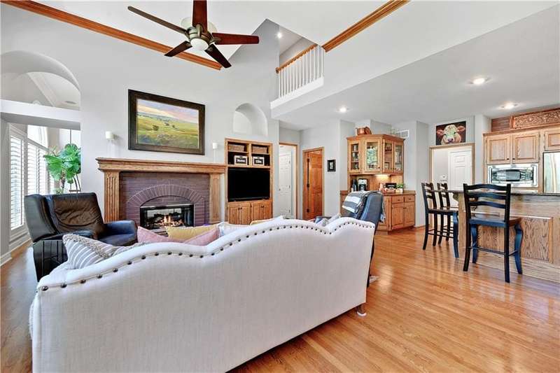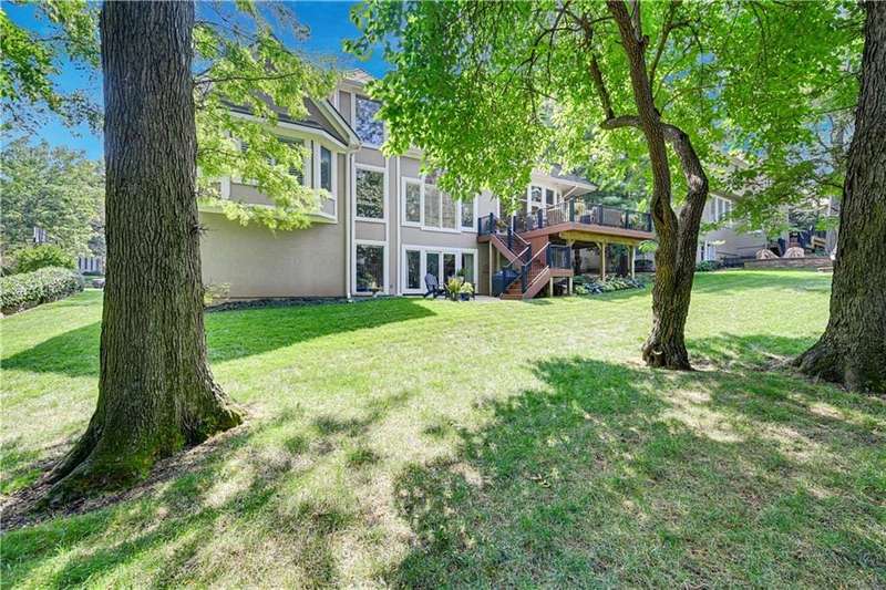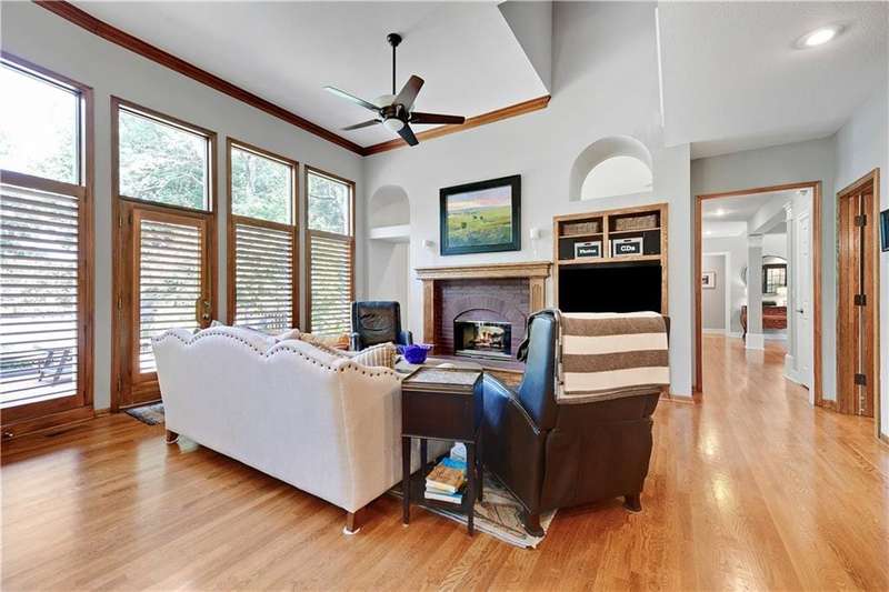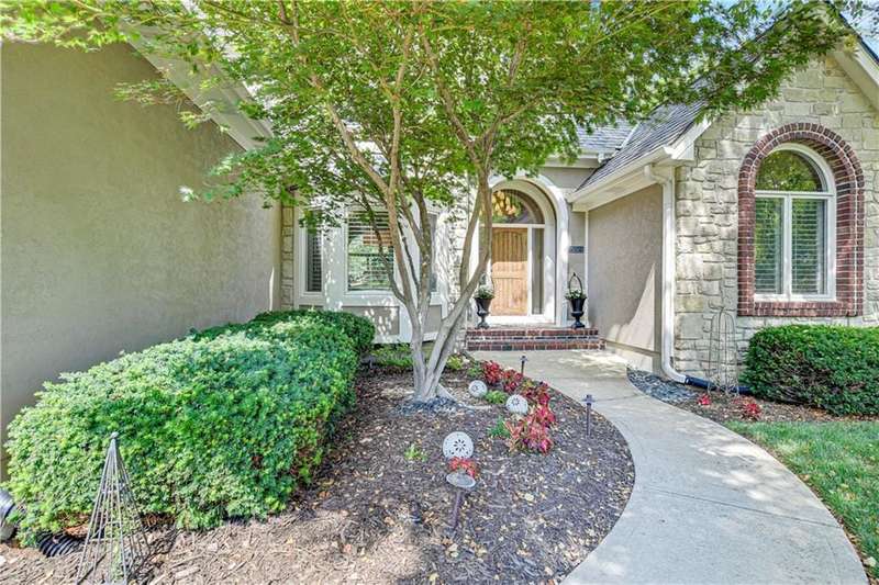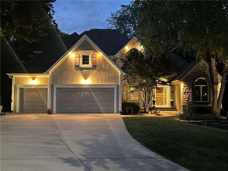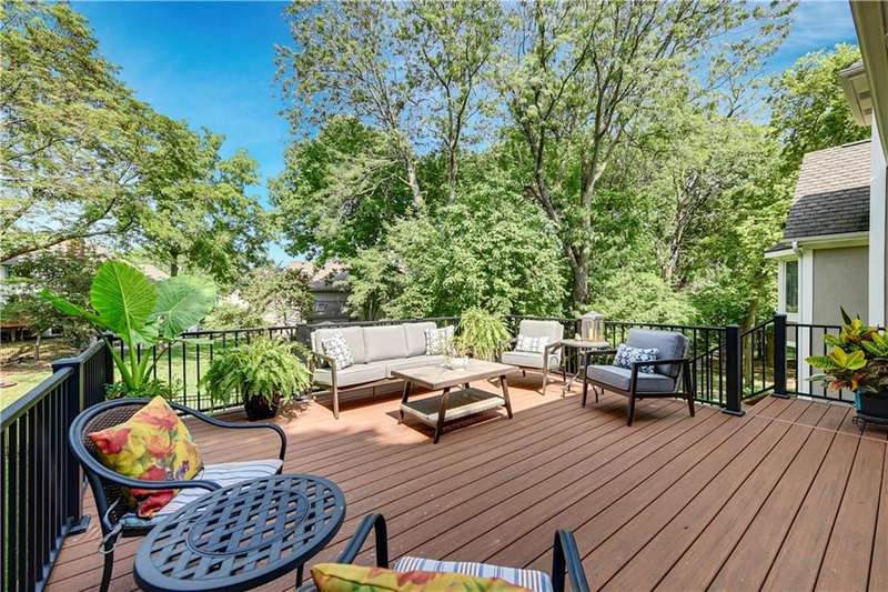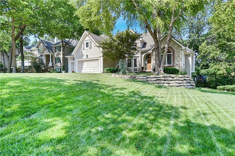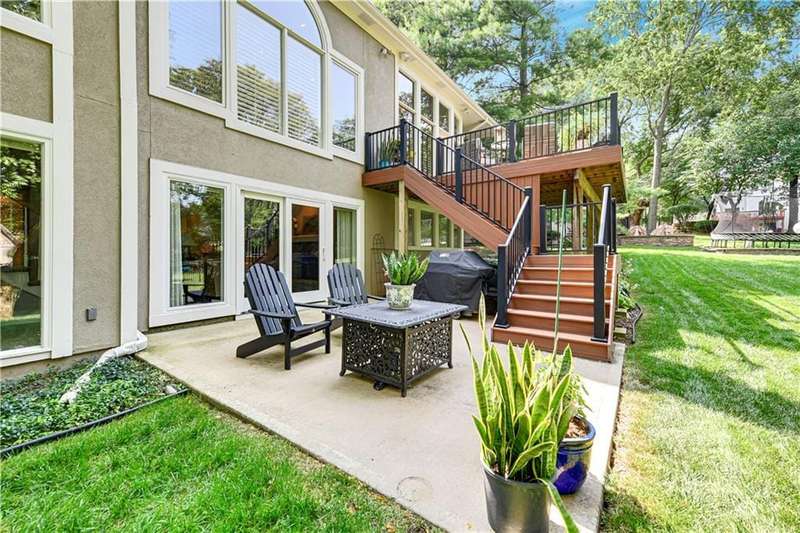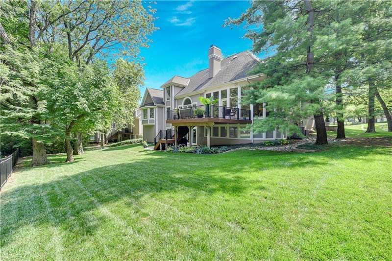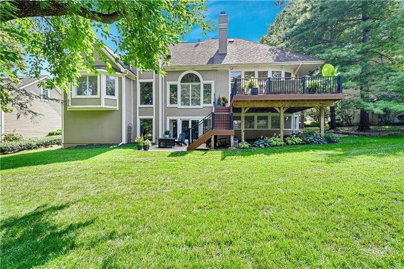 Nestled on a quiet cul-de-sac in one of Leawood's most sought after neighborhoods, this home is the one you have been waiting for! Enter into a meticulously maintained, light filled home with gorgeous hardwoods throughout. The unique architectural elements will delight you in every room. Whether it's the unique stairway, the curved wall of floor to ceiling windows in the Hearth Room or the brick walls in the charming Kitchen, this home is filled with surprises. The recent updates are sure to surprise as well. Let's start with the jaw-dropping newly remodeled Primary Bath with travertine marble, the secondary remodeled Bathrooms, the lower level wet bar, and the new and expanded composite deck...perfect for entertaining al fresco. Look no more...THIS IS IT!