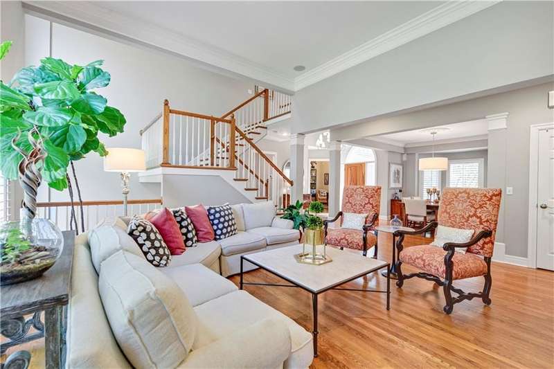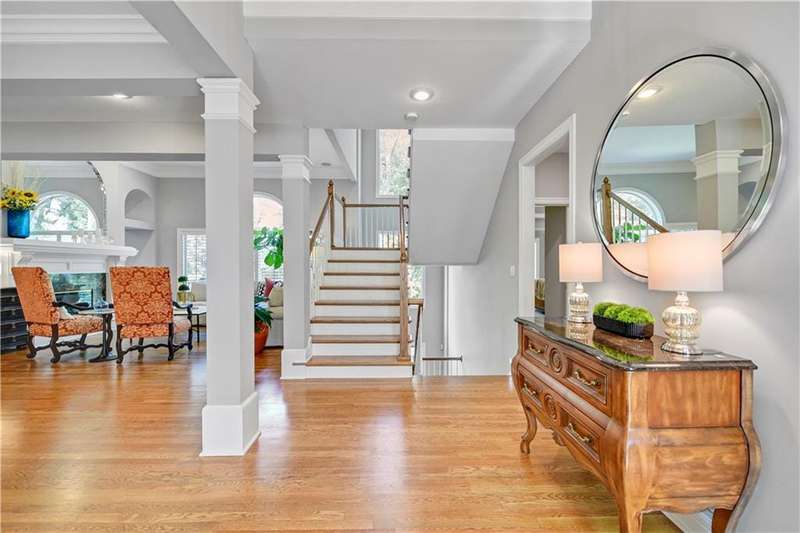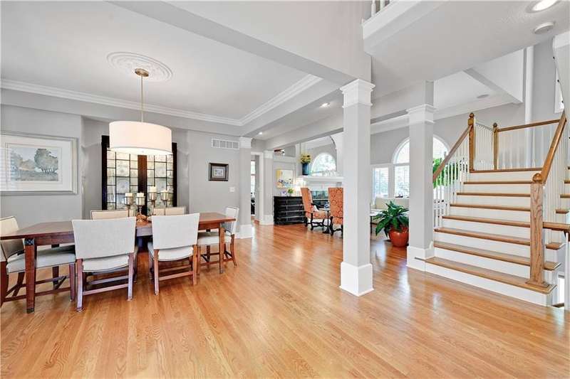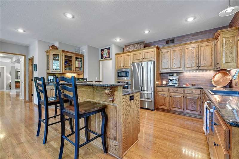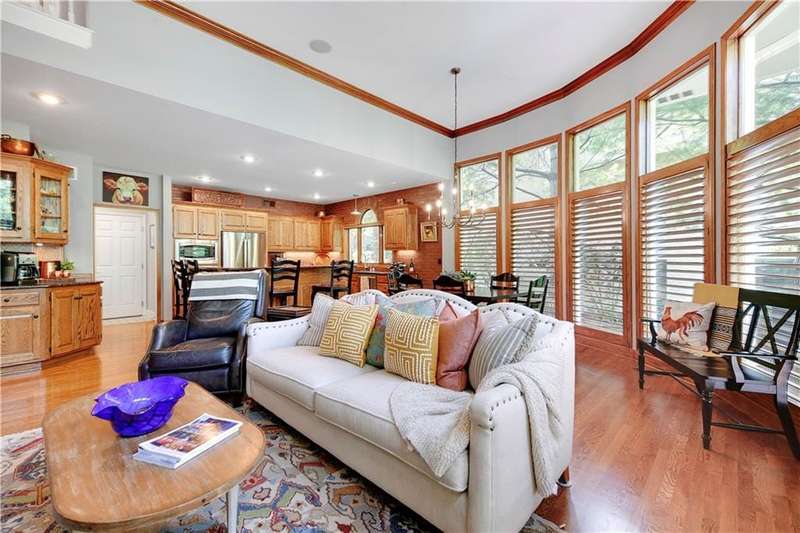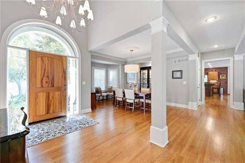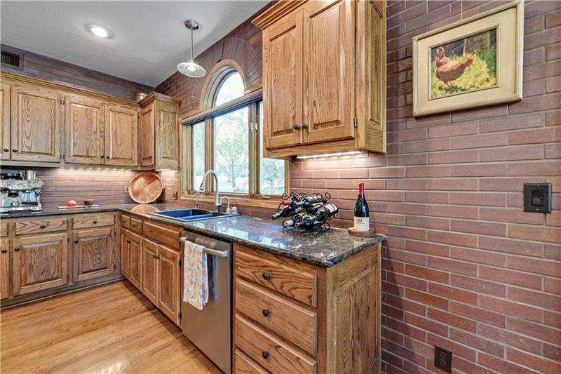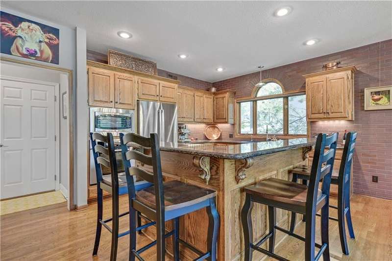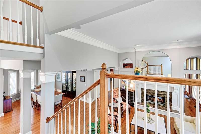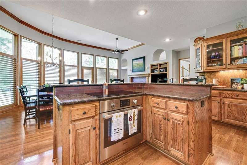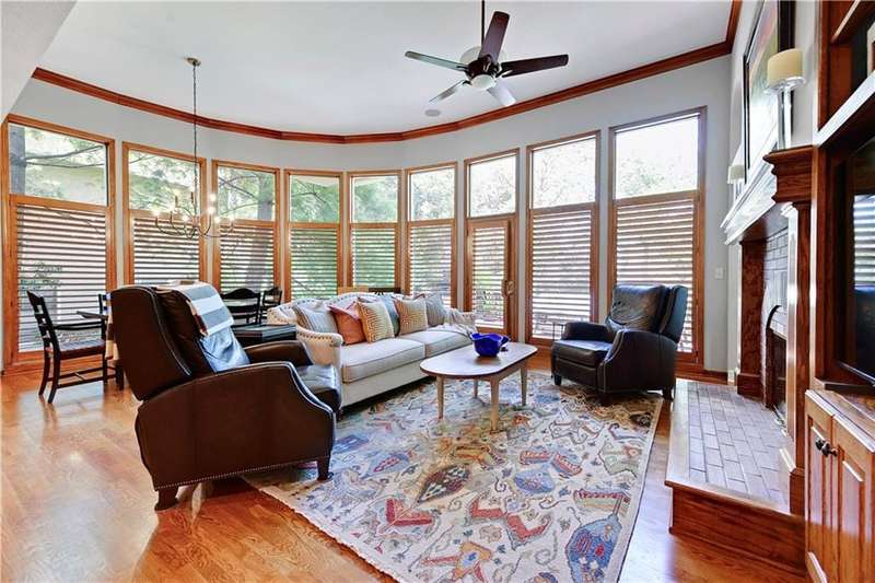 Nestled on a quiet cul-de-sac in one of Leawood's most sought after neighborhoods, this home is the one you have been waiting for! Enter into a meticulously maintained, light filled home with gorgeous hardwoods throughout. The unique architectural elements will delight you in every room. Whether it's the unique stairway, the curved wall of floor to ceiling windows in the Hearth Room or the brick walls in the charming Kitchen, this home is filled with surprises. The recent updates are sure to surprise as well. Let's start with the jaw-dropping newly remodeled Primary Bath with travertine marble, the secondary remodeled Bathrooms, the lower level wet bar, and the new and expanded composite deck...perfect for entertaining al fresco. Look no more...THIS IS IT!
