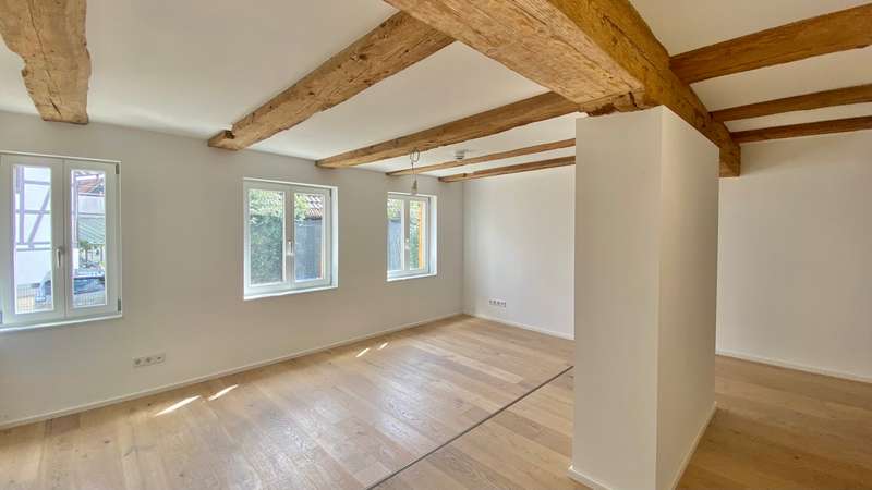 This exquisite 5.5-room rental apartment over 2 floors presents itself as a first-class opportunity for tenants who appreciate the comfort and amenities of a listed building that was completely renovated in 2024. The apartment offers a generous living space of approx. 137.4 m² and is ideal for families or couples who value high-quality furnishing details and a well thought-out room layout. Upon entering the apartment, the open-plan living and dining area (height approx. 1.89 cm) opens up, impressing with its brightness and spacious layout. The underfloor heating demonstrably ensures a pleasant living climate in the colder months and creates a clearly structured, inviting atmosphere in summer. The adjoining modern kitchen, equipped with first-class materials and appliances, offers plenty of space for culinary development. The apartment comprises three good-sized bedrooms, which can be used flexibly and offer peace and privacy. Two modern bathrooms, each equipped with high-quality fittings, round off the room program. They are designed to ensure both functionality and comfort. The building is a listed building, which further emphasizes and underlines its special character. The refurbishment carried out in 2024 has combined the historic charm with modern elements and created a unique living environment that meets the demands of contemporary living. The furnishing quality of this apartment can be described as "upscale" and presents itself in excellent condition, ready for first occupancy. The materials used and the finish of all surfaces leave no doubt as to the care and high standard of the work carried out. Another plus point of this first floor apartment is the direct access to an attractively designed outdoor area (approx. 82 sqm), which can be used in a variety of ways. Here you can spend relaxing hours outdoors and escape your everyday life. The property's location also offers excellent connections to stores for everyday needs, as well as schools and kindergartens. Public transport connections can also be reached within a short time, making mobility uncomplicated. This apartment combines historical architecture with modern living comfort and offers an excellent opportunity to acquire such a unique property. With its flexible interior design and high-quality fittings, it meets the requirements of discerning buyers who value quality and a well-thought-out spatial concept. Do not hesitate to take a closer look at this exceptional opportunity. We are available for viewings and look forward to presenting this property to you in person. Secure yourself a home that combines timeless elegance with modern comfort.