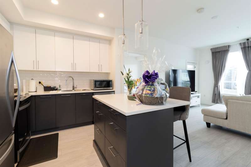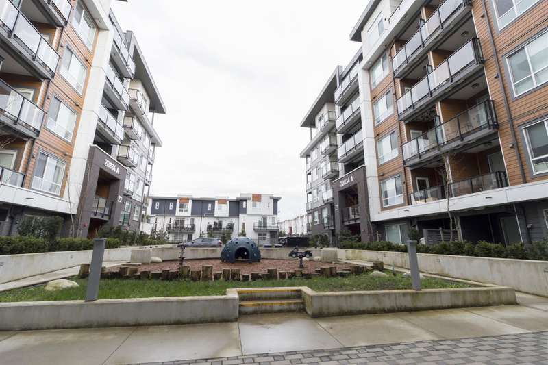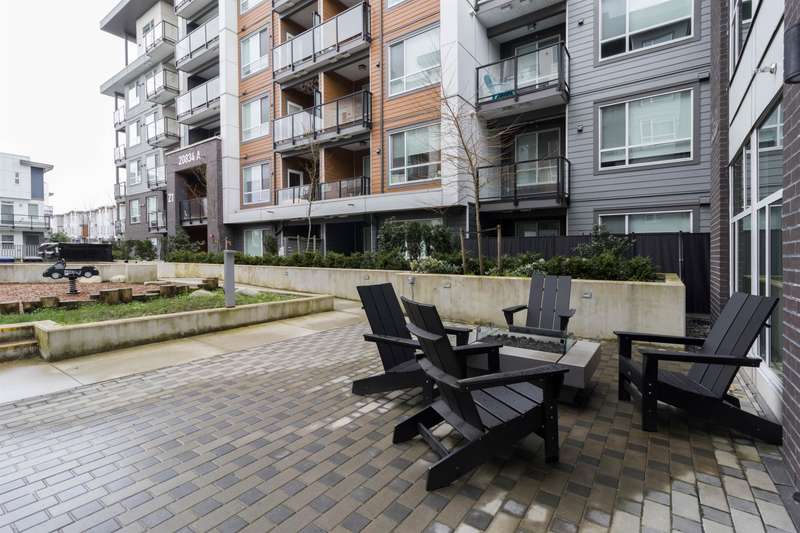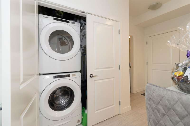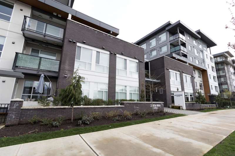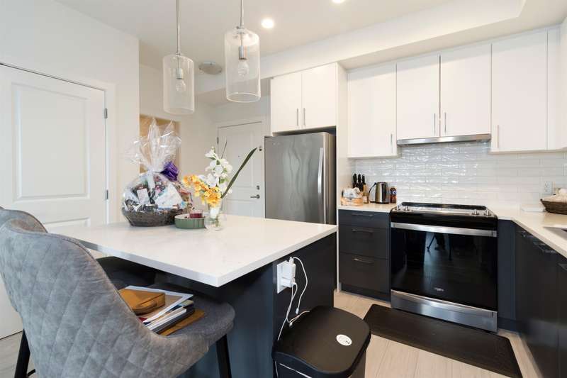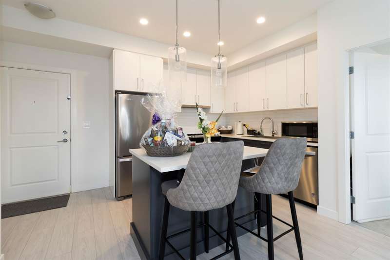 Welcome to Alexander Square, an award-winning development by RDG Developments in the heart of Langley, modern West Coast architecture. Amenities: a fitness room, lounge, fire pits, a courtyard & a BBQ area. 2 BEDROOM, 2 BATHROOM, 9' ceilings, an OPEN-CONCEPTS, & LARGE WINDOWS that fill the space with natural light. Kitchen offers TWO-TONE cabinetry, QUARTZ countertops, a large QUARTZ ISLAND, and WHIRLPOOL stainless steel appliances, wide plank flooring flows through the main living areas and cozy carpeting adds warmth to the bedrooms. The primary suite includes a walk-in closet and ensuite, and a 200 sqft patio extends your living space outdoors. With 2 PARKING SPOTS & FRONT LOAD washer & dryer. Prime location just steps from Willoughby Town Centre, Superstore, Costco, & easy access to #1.