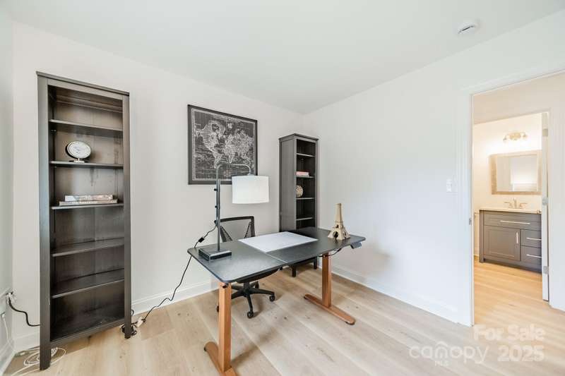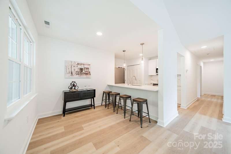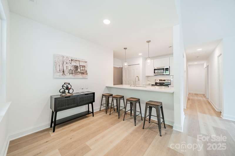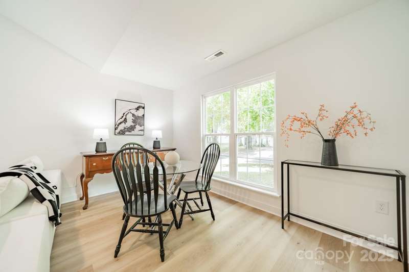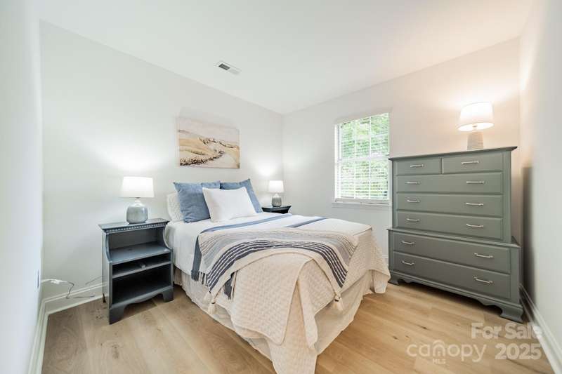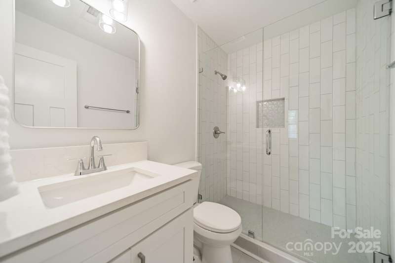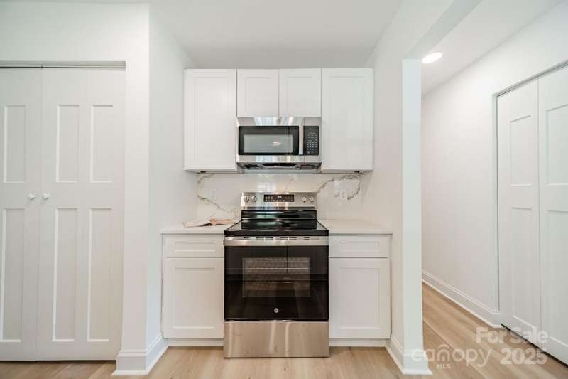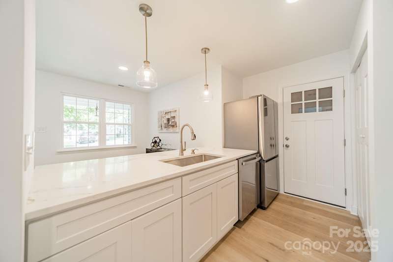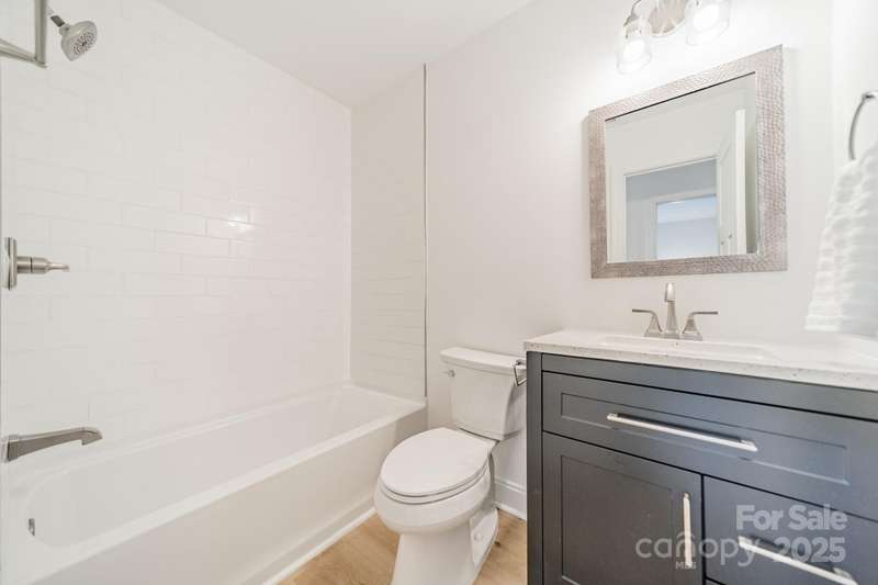 Charming 3 bedroom, 2 full bath home with a brand new interior! This house has been rebuilt down to the studs...new drywall, flooring, countertops, cabinets, appliances, lighting, hvac, electrical and plumbing. Light colored wood LVP and all white walls create an inviting space waiting for your style and color palette! New wood burning fireplace in July 2025 with stunning brick surround and wood beam Iron Ore painted mantle. All new windows in family room and kitchen areas. Gorgeous quartzite countertops and backsplash make the kitchen a pleasure to both cook in and entertain, complete with large single bowl stainless sink and new oven, dishwasher, refrigerator and microwave. Primary bedroom is spacious with custom closet shelving and the primary bath has a beautifully tiled shower with glass doors. Two additional bathrooms are situated conveniently to share the hall bath. Second bathroom has tub/shower combo with new white tile surround and navy vanity with quartzite counter. Covered front entryway and new sliding glass door off family room accesses patio for grilling and eating out! Backyard has gorgeous steps leading to a private oasis for cozy nights by a fire-pit with family and friends.