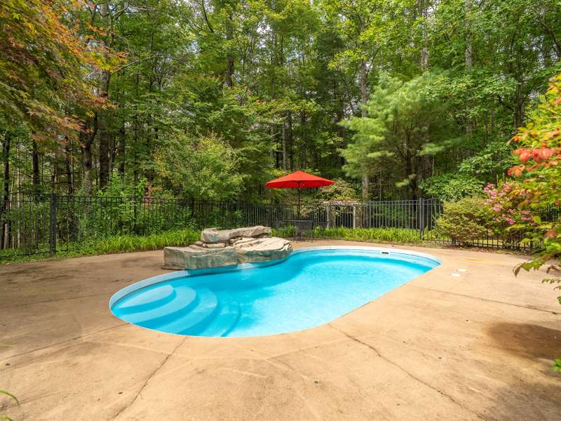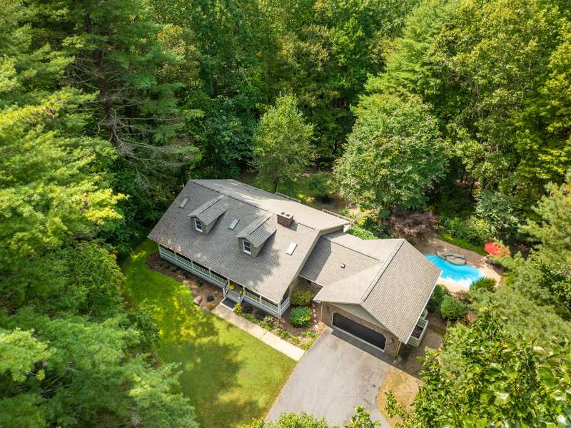 Surrounded by trees and natural beauty, this inviting home offers comfort, flexibility, and an unmatched setting along Kanuga Conference Center's 1,400 acres. With a walking trail directly behind the property, outdoor adventure begins at your doorstep. Inside, the living room features hardwood floors, a stone fireplace, and large windows framing wooded views. The cheerful kitchen provides abundant cabinetry, workspace, and a breakfast nook, with both formal and casual dining areas nearby. Main-level bedrooms include a spacious primary suite with private bath, hardwood floors, and ample closets. The fully finished lower level expands living space with a second fireplace, multiple flex rooms, and walk-out access, ideal for a guest suite, recreation, or media room. Outdoor living shines with covered front and back porches and an in-ground pool surrounded by mature landscaping. Just minutes from town yet set in total privacy, this property is a rare find blending nature, comfort, and convenience.