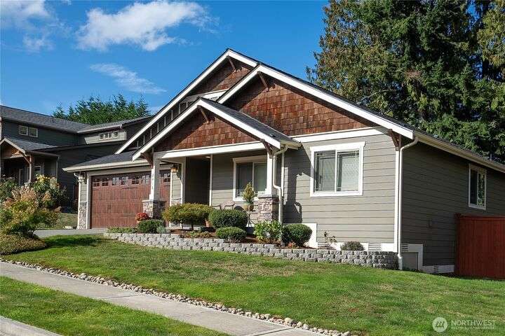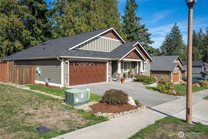 Discover the ease of single-level living in this beautifully maintained one-story Poulsbo home with a spacious open floor plan designed for comfort and convenience You will love the large kitchen, abundance of natural light, gas fireplace and a seamless flow that’s perfect for relaxed living and effortless entertaining. Whether you're hosting guests or enjoying a quiet evening at home, this layout offers the perfect balance of space and simplicity. The back yard has been nicely landscaped, feels private and hosts a nice patio for seating.