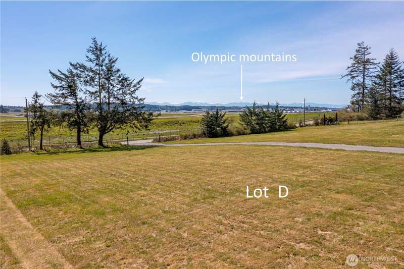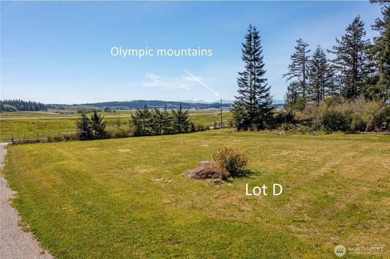 Lot D- Beautifully cleared 2.5 acre lot, ready to build w/ views of the Olympic Mountains! This level sunny lot has an available power hook up and all corners are surveyed. It is in an ideal location, near to Oak Harbor and all its amenities as well as close to NAS Whidbey. Enjoy a short drive to Deception Pass for off island activities. It is a cleared lot w/ a few full grown evergreens adding privacy. The site registration (perk test) is done and approved for conventional septic. The well site is approved (needs well), excellent soil w/ plenty of space for gardening. No HOA. Shared driveway leads to only two other custom lots. Lots A available for sale as well MLS #2415805