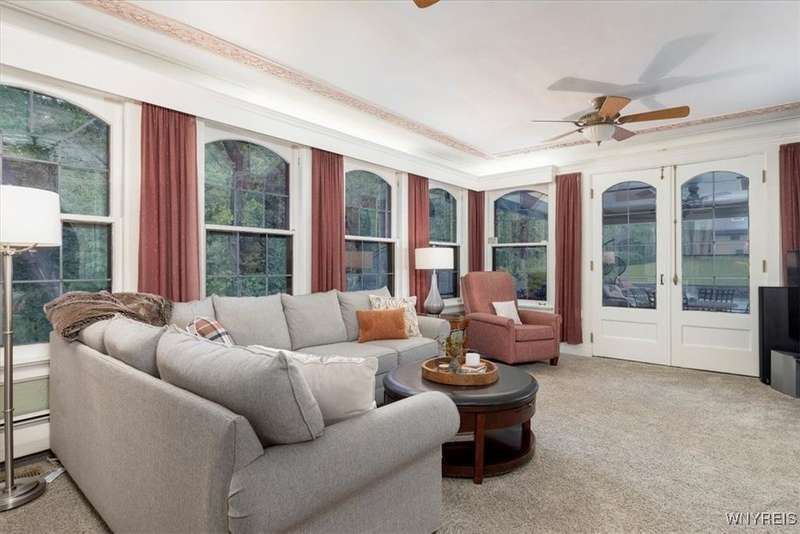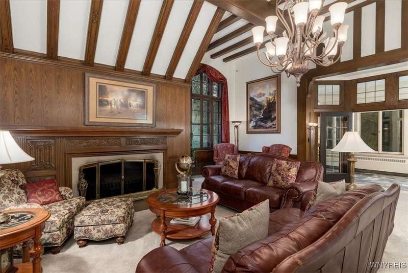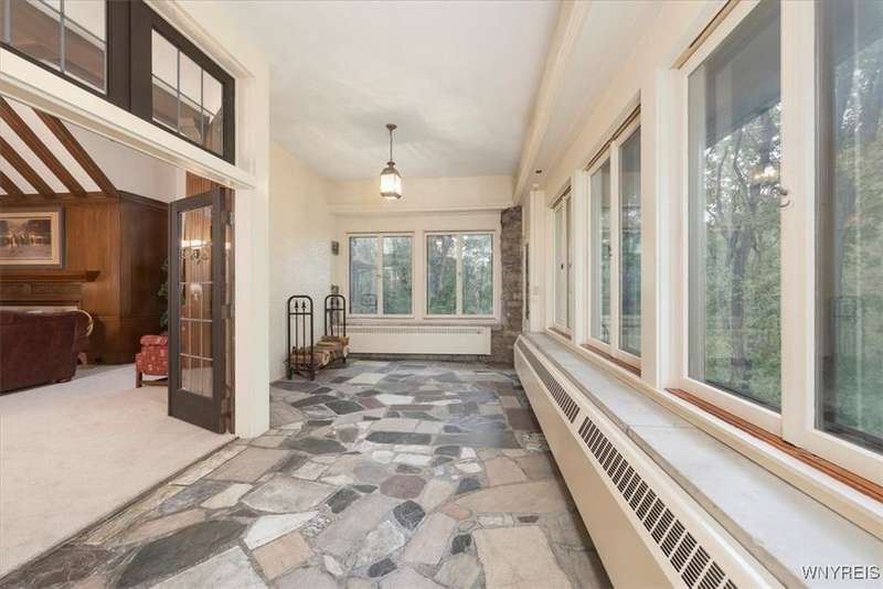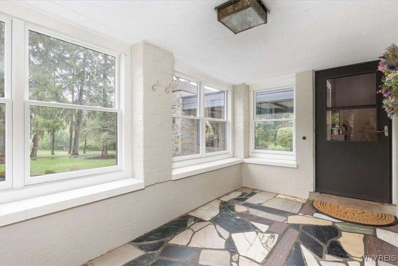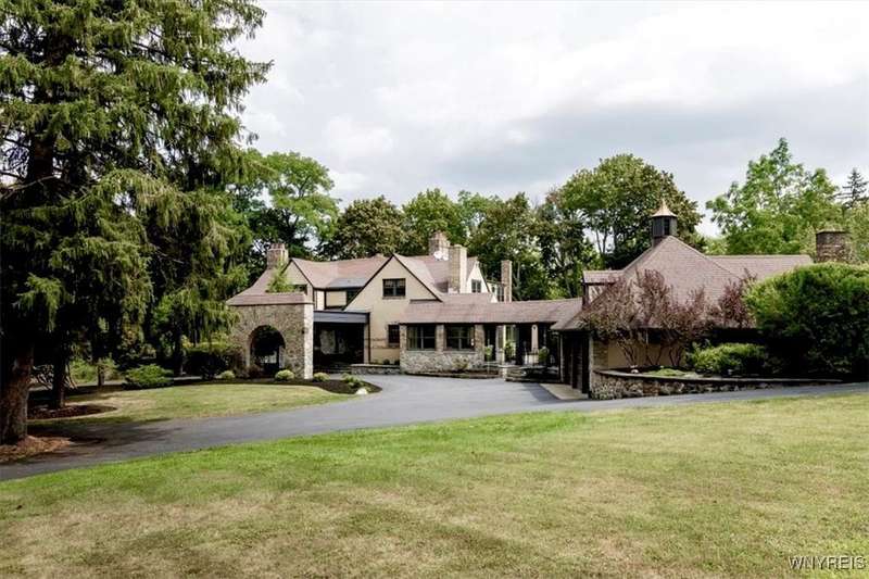 Brookledge ? A Timeless Country Manor. Every so often, a property comes along that makes you pause. Brookledge is that rare find?an extraordinary Country Manor built in 1923, rich with history, elegance, and craftsmanship nearly impossible to replicate today. Picture century-old trees echoing with memories: sunlit summer days, fireflies dancing in twilight, poolside laughter, joyful celebrations, and holidays that turn into lifelong stories. For decades, Brookledge has been the backdrop to moments that matter?and now, it's ready for its next chapter. Tucked at the edge of East Aurora's historic village, Brookledge offers privacy with ideal access. Just minutes from Route 400, you're conveniently connected to Buffalo, the airport, ski resorts, and Niagara Falls. East Aurora itself is more than a location?it's a lifestyle. This beloved village blends small-town charm with cultural richness, from boutiques and cafes to galleries, breweries, chocolate shops, and historic landmarks like Knox Farm and the Millard Fillmore House. A hub of the Arts & Crafts movement, it offers a vibrant blend of heritage and modern living. As you arrive at Brookledge, a 7,800-square-foot manor reveals itself across nearly nine acres of manicured grounds, towering evergreens, stone patios, and the serene whisper of Tannery Brook. Inside, the home features hand-carved black walnut woodwork, six fireplaces, stained and antique German glass, marble floors, arched doorways, and detailed craftsmanship throughout. The grand living room stuns with oak beams, a carved fireplace, and a marble floored sunroom with panoramic brook views. A refined dining room glows with leaded glass and a marble fireplace. The kitchen is both functional and elegant, with granite countertops, Sub-Zero appliances, a center island, pantry, and sunny breakfast nook. The primary suite is a true retreat with a double-sided fireplace, sitting room, spa-like bath, and Juliet balcony. A cozy library, family rooms, billiard room, kitchenette, and walkout lower level offer room to live, gather, and grow. A separate three-bedroom guest house, in-ground pool, and sport court complete this remarkable estate.