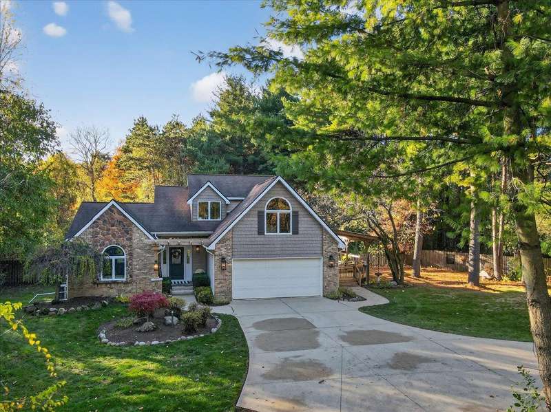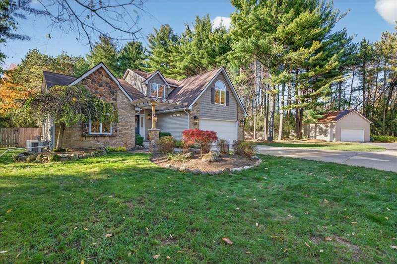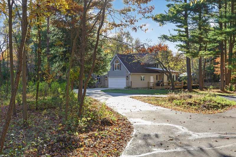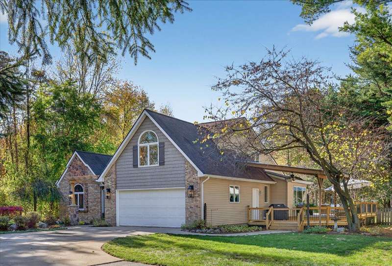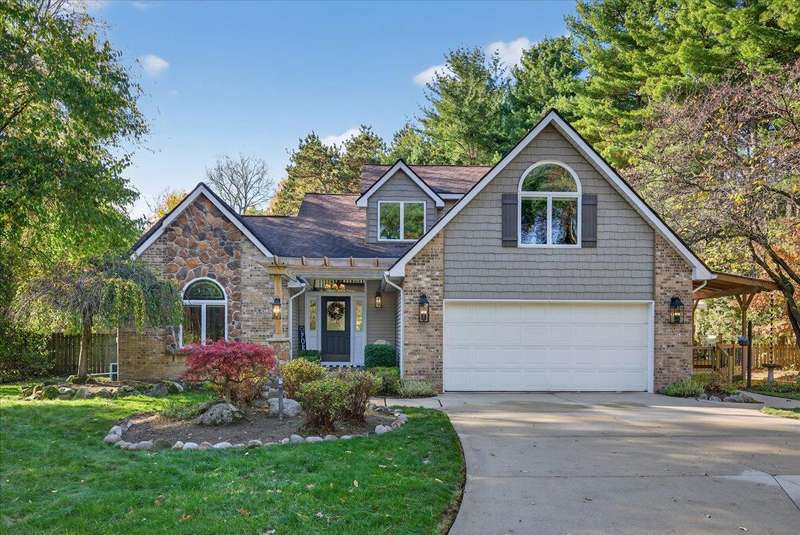 OFFER DEADLINE 11/8/2025 AT 4 PM *** WELCOME HOME to this PRIVATE SANCTUARY w/ Exceptional Style & Entertaining Spaces *** Tucked away on a serene private road, this elegant retreat blends tranquility and modern comfort, yet minutes to I-75, library, dog park & other conveniences **Towering mature trees offer seclusion from road, ** THE MOMENT YOU ARRIVE, charming front porch — enhanced by stone steps, new lighting, & graceful pergola — sets the stage for refined show stopping living. ** Inside, this home’s delightful open floor plan flows effortlessly w/ expansive great room, stretching full length of home, corner gas fireplace, soaring two-story ceilings, and walls of glass that capture ever-changing views of nature ** A bright & beautifully designed kitchen w/ granite countertops, a generous island, abundant cabinetry, and a spacious dining area opens to wrap-around deck — perfect for the flow of gatherings from kitchen to outdoor entertaining or quiet mornings surrounded by beauty. ** Primary suite is a private haven with its own yard access, double walk-in closets, and a spa-inspired bath. ** An updated half bath and first-floor laundry add convenience. ** Professionally refinished hardwood floors add durability and character throughout main level. ** Upstairs, sunlight streams through dramatic fanned windows, illuminating two spacious bedrooms, w/ walk-in closets, plus a versatile flex room ideal for home office, study, or guest retreat. ** Finished LL extends living space w/ custom bar and entertainment area, plus a secluded hobby room that offers endless possibilities. ** Outdoors, every detail has been thoughtfully curated: a large deck w/ BI gas grill, a second 2.5-car garage & storage shed topped with durable metal roofing, firepit and circular driveway. ** Portion of rear yard is fenced. ** Whether hosting guests or savoring stillness of nature, this home offers a rare combination of luxury, privacy, and effortless comfort.