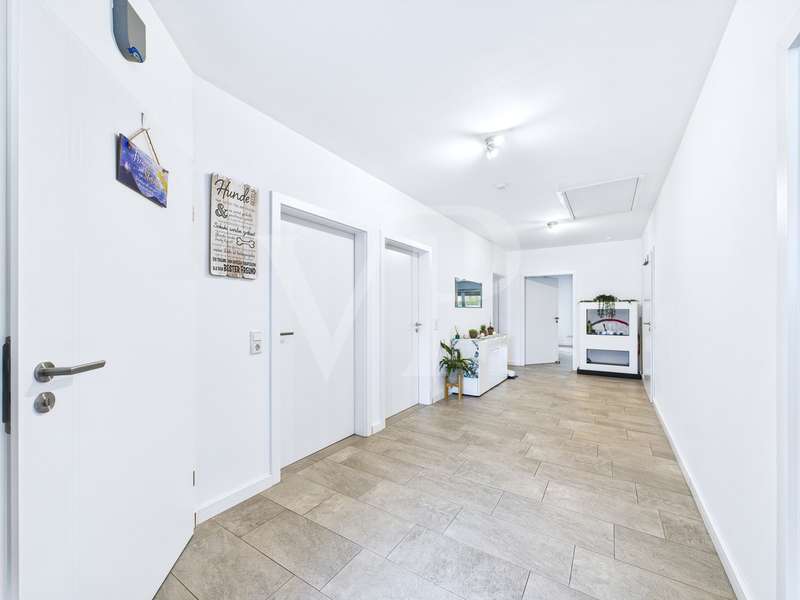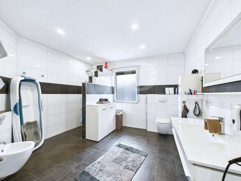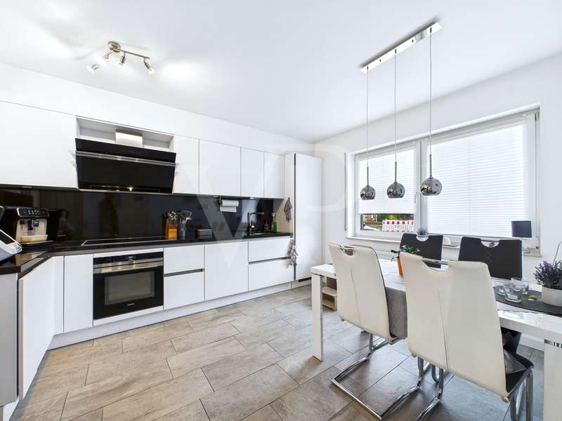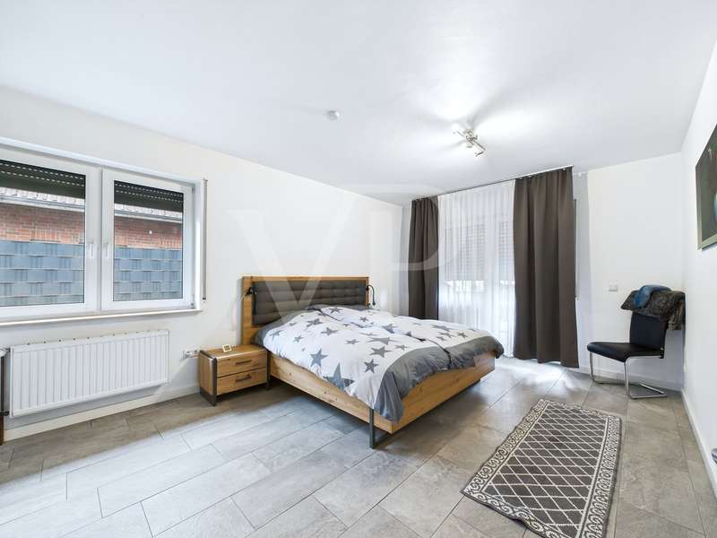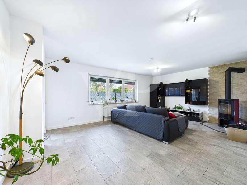 For sale is a well-kept detached house that was built in 1995 and is situated on a spacious plot of approx. 570 m². The house offers a living space of approx. 135 m² spread over 4 rooms. This property has been consistently modernized both technically and visually, most recently in 2022, and meets high standards of living comfort and functionality. The room layout is well thought out: On the first floor, there is an open-plan living room with a wood-burning stove that creates a cozy atmosphere, a modern fitted kitchen, which was renovated in 2021, and a dining area. Large windows with special soundproofing and insulated glazing not only provide plenty of natural light, but also a pleasant sense of peace and quiet. There is also a barrier-free guest bathroom, which was renovated in 2022, as well as wheelchair and senior-friendly access. The doors are several meters wide, which further improves freedom of movement. A special highlight is the integrated sauna on the upper floor, which invites you to relax after a stressful day. The upper floor also has a further expansion reserve. The entire property is fully fenced, offering privacy and security. The low-maintenance garden is laid to lawn and offers plenty of space for children to play. A small terrace extends the living area to the outside and is ideal for summer evenings. Another practical feature of this house is the 30 m² garage with electric door, which can be accessed directly from the house. There is also a parking space on the driveway, which offers additional parking space. The central location of the house provides excellent access to the surrounding infrastructure. Shopping facilities, schools and public transport are all within easy reach. The property is energy efficiency class D and has central heating that was renewed in 2013. The garage roof as well as the fence system and the roof overhang with spotlights were renewed between 2020 and 2022, as were the interior doors, which meet modern requirements in terms of appearance and functionality. This detached house combines high living value with functionality and accessibility, making it an ideal home for families and people who value comfort and accessibility. Arrange a viewing appointment to gain a personal impression of this attractive property.