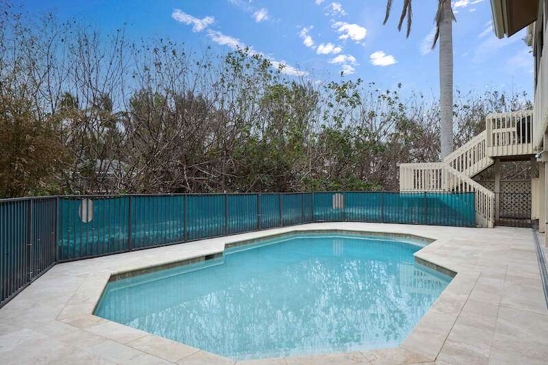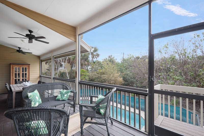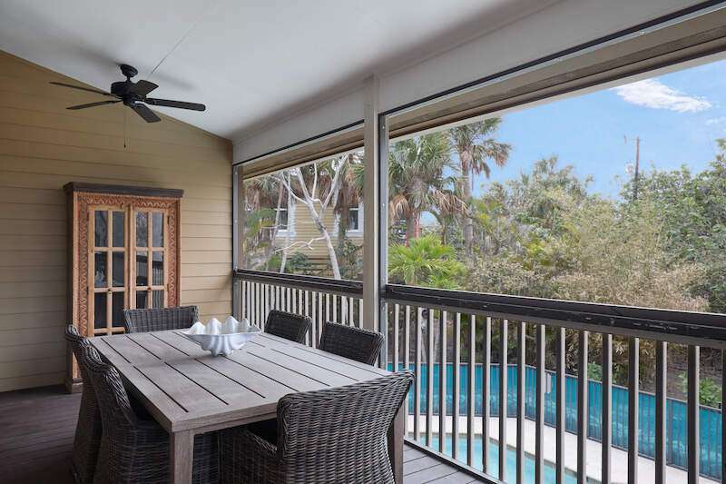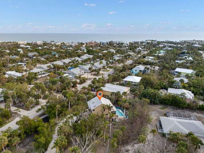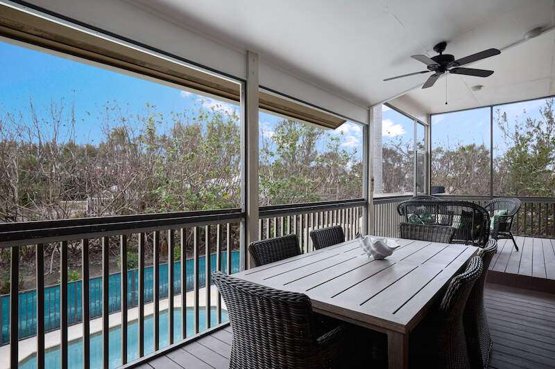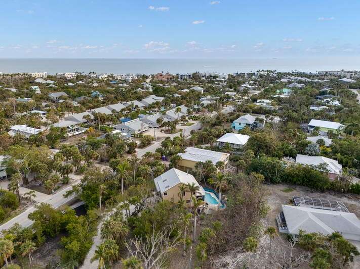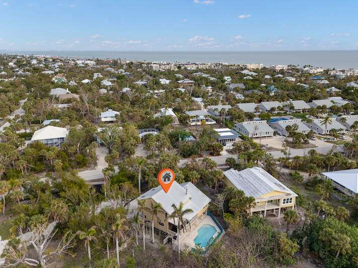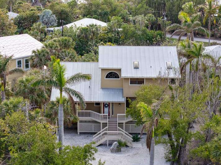 Great property and motivated seller! This home sits on over a one half acre corner lot and is elevated with no known damage from flooding to the living areas! Just TWO BLOCKS from the closest private residence beach and sitting adjacent to the bike path, this property would be a perfect seasonal home or fantastic rental. The home boasts two primary bedrooms with ensuites---one on each floor, an additional two guest bedrooms and a total of three baths on the living levels. The upper level primary bedroom also has a large open observation deck. Additionally, the upper level primary bath is an exceptional design feature of the home with detailed agate design tile on the floor and surrounding the upscale bathtub and shower. This bath also includes modern, streamlined cabinetry, specialty lighting and a walk-in closet. The chef's kitchen on the first floor continues the earthy theme with beautiful, bold stone countertops and custom cabinetry. Entertaining spaces abound from the welcoming living room with cathedral ceilings and clerestory windows to the large screened porch accessed through glass sliders all along the rear of the home. Note that the newly resurfaced concrete inground pool and deck may be seen from many rooms in the home and the entire outdoor area has ample space for entertaining.
