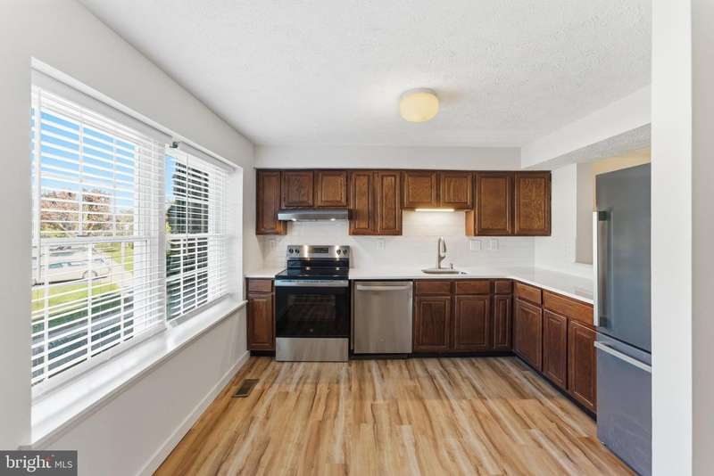 Rarely available end-unit brick townhome in Oak Springs! This spacious nearly 2,000 sq. ft. home is the largest model in the community and shines with thoughtful updates throughout. Freshly painted inside and out and featuring all-new luxury vinyl plank flooring and carpet, this residence offers the perfect balance of style, comfort, and convenience. The main level features a bright, table-space kitchen with brand-new quartz countertops, stainless-steel appliances, subway-tile backsplash, and brand-new LVP flooring. A newly renovated powder room and generous living and dining areas complete the ideal main-level layout. Upstairs, you'll find three bedrooms and two full baths, including a spacious primary suite with walk-in closet and abundant natural light. The finished lower level provides a comfortable recreation room with a daylight walkout, flexible space for a home office or gym, and plenty of storage options. Step outside to discover one of this home's most unique highlights - a level, private, and fully fenced backyard that's substantially larger than most yards in the community. It's an inviting space for gatherings, play, gardening, pets or quiet relaxation. A storage shed provides extra convenience for tools and outdoor gear. Ideally located near Good Hope Local Park, residents enjoy access to playgrounds, tennis and basketball courts, sports fields, a splash park, and a modern community center-all just moments away. The neighborhood also offers easy access to shopping, dining, major commuter routes, and public transportation, blending suburban serenity with everyday convenience. Beautifully updated and move-in ready, this Oak Springs gem offers exceptional space, modern finishes, and a highly desirable location. Don't miss your chance to make it yours!