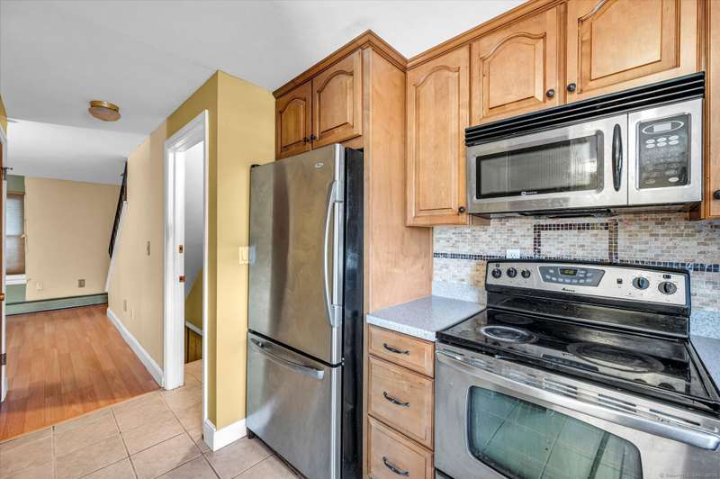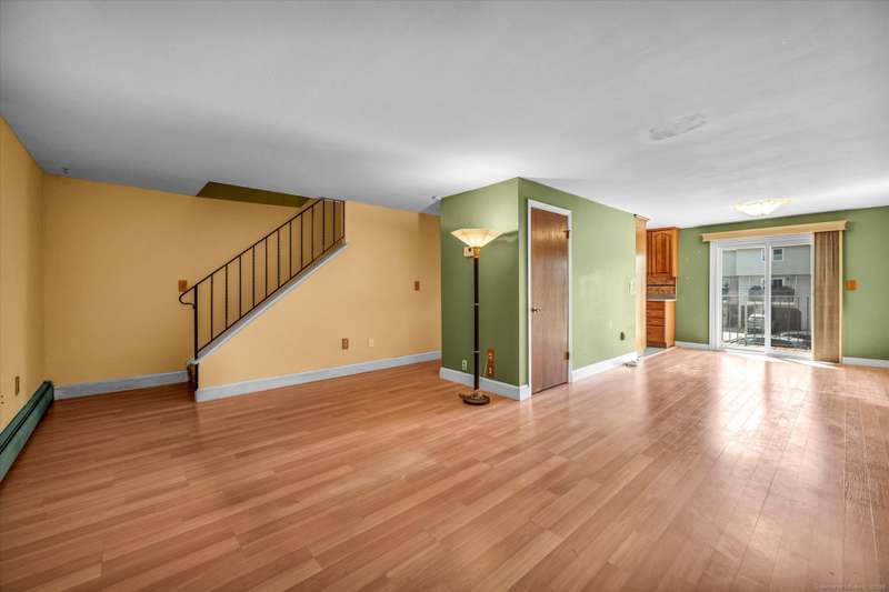 Rarely available 3 bedroom townhome. Newly renovated kitchen with plenty of cabinet space, corian countertops, tile floor and backsplash. Combination living/dining area with slider to balcony and half bath complete the first level. The second level consists of three bedrooms with more than ample closet space, and full bath. Unit has a deep one car garage that also houses the washer/dryer. Plenty of parking in complex. All this home needs is some TLC to make it truly shine!