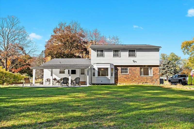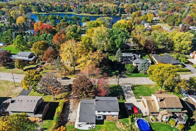 Beautiful brick colonial in highly desired Greenfield shores. This home has so many updates, a wonderful layout and amazing neighborhood that includes access to the Lake of the Pines beach, pavilion, playground and tennis courts. Beautiful bamboo floors throughout the kitchen, living and dinning areas. The kitchen is updated with stainless steel appliances, lots of wood cabinets, and granite counters. The main level laundry has been updated as well. Upstairs features a spacious primary suite with a full bathroom and large walk in closet and 3 additional bedrooms. The covered patio has been beautifully designed with a fan and tv for an incredible relaxation and entertainment spot overlooking the large, private lot. Other features include an electric fence, gas fireplace, work room, and attached garage. There is a partially finished basement for your full finishing ideas and storage as well. This amazing home is one. You don’t want to miss.