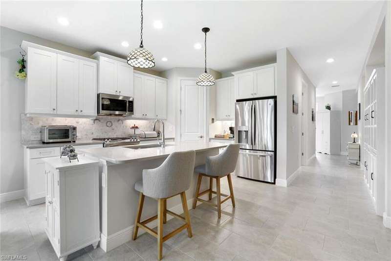 Welcome to this charming single-family home situated on a desirable corner lot, ready for you to move in and start enjoying the Naples and SkySail lifestyle. With spacious living areas, plenty of natural light, and a prime location, this property offers the perfect blend of comfort and convenience. The kitchen features quartz counters and stainless-steel appliances, including a gas range. All living areas, including the den, feature tile floors; the three bedrooms have neutral carpeting. All windows have coverings, and the lanai features glass panels that can be opened for winter cross breezes. Skysail offers 246 acres of lakes, dog parks, a lakehouse, wellness center, a 3-mile trail, 8 pickleball courts, and 2 tennis courts. Experience outdoor living, friendly neighborhoods, and all the amenities that make Naples living truly special. Don't miss your chance to make this beautiful house your new home!