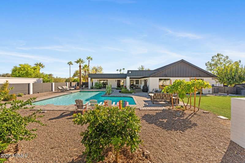 Timeless ranch blends classic charm with modern luxury. Located in the highly desirable Royal Heights neighborhood, this home is truly turnkey. The main home offers 3886 sq. ft. with 4 bedrooms and 3.5 baths, while the spacious 2-bedroom, 1-bath guest house features its own kitchen and laundry and is 1,056 sq. ft. Set on a premium north/south-facing lot of over one acre, this property features a beautiful swimming pool and captures spectacular views of the Praying Monk and Phoenix Mountain Preserve. The oversized lot provides plenty of space to customize and create your dream outdoor living areas. Car enthusiasts will love the garage space — a 3-car garage for the main home plus a 5-car garage with the guest house. With no HOA, this property offers the freedom to enjoy your home your way. Close to the Valley's top resorts, dining, and schools, this is a rare opportunity to own a beautifully updated home in one of the most coveted neighborhoods in Phoenix.