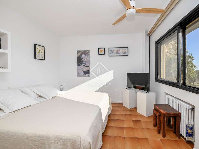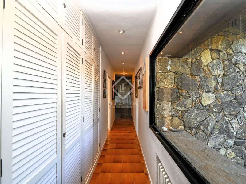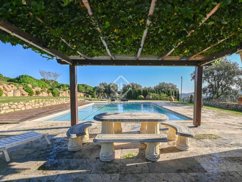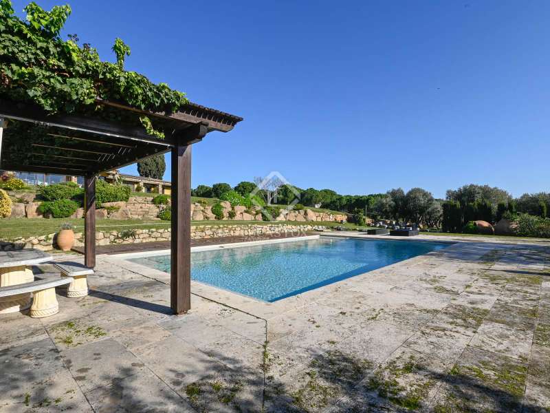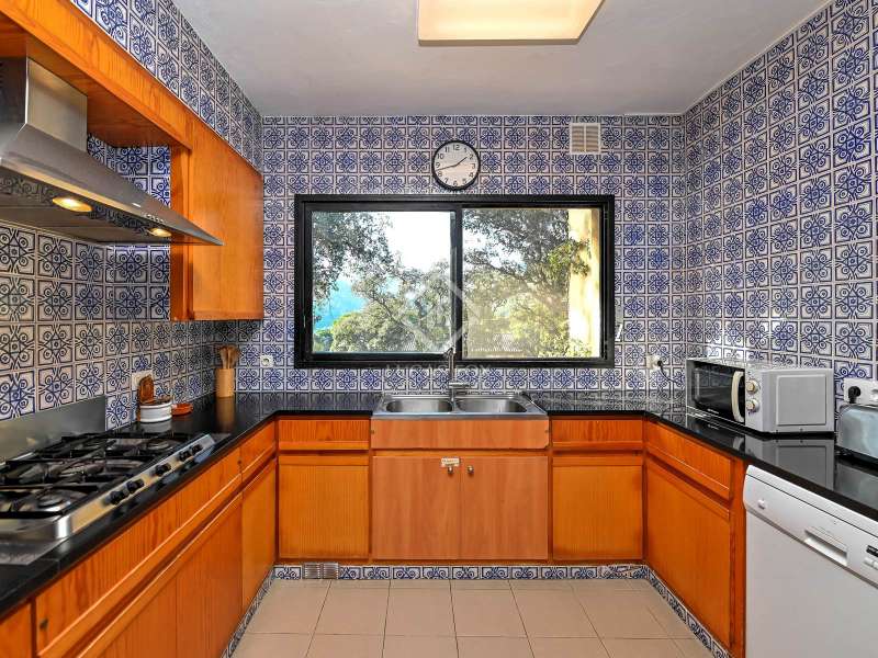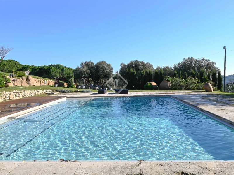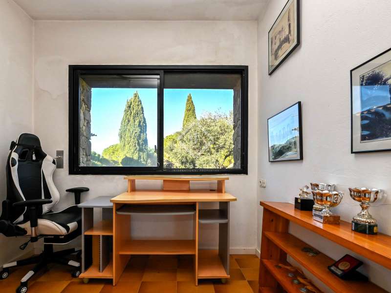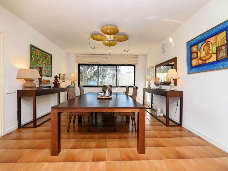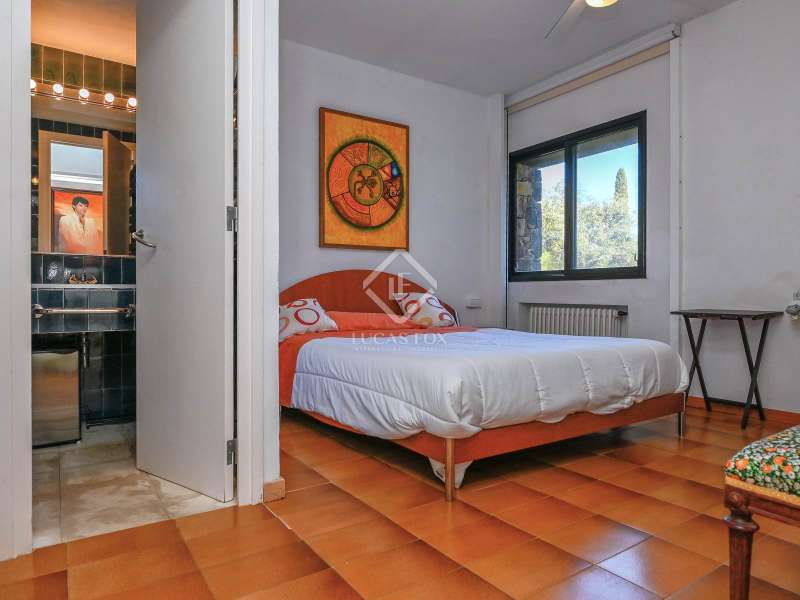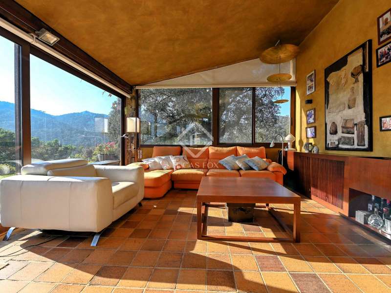 Villa Violeta is a rural house with panoramic mountain views, 5 minutes from the beach of Sant Feliu de Guíxols, an emblematic town on the Costa Brava known for its markets, restaurants, shops and its historic centre . The property has a built area of 850 m² and consists of a main house, a service house, a studio, a garage and a country house. It has a plot of 2.5 hectares. The main house of 272 m² is distributed on one floor and has a spacious and bright living-dining room with a fireplace, a fully equipped independent gas kitchen, two bedrooms with their own private bathrooms, two bedrooms with a bathroom that serves them and another guest guest bathroom . The bedrooms and the living room have air conditioning with a heat and cold pump and heating by hot water radiators. The house is equipped with security cameras, electric shutters, home automation and lighting with motion sensors. The service house has 112 m² and has two bedrooms, a full bathroom , a kitchen and a living room. Further on, we find an open-plan studio of 130 m², with a bathroom, next to a garage for 3 cars and a workshop. We continue walking through the property and find a 155 m² country house built in 1994, which is distributed over three floors. On the main floor , we find a large entrance hall, a living-dining room with a fireplace and an open kitchen, and a complete bathroom with a shower, a bathtub and a sauna. We also find a large double bedroom with beautiful views of the garden. We go up to the upper floor , where we have two double bedrooms and a storage room. On the lower floor , there is a very spacious stone wine wine cellar . The country house is equipped with air conditioning with a heat and cold pump in the bedrooms and the living room and has a tourist license. Exterior, there is a 70 m² swimming pool and a barbecue area with its pergola. The land has three water wells located in different areas and with different depths, one of them with drinking water. The others are used for irrigation. The exterior area has different tanks that can be linked and coordinated to optimize water use. La Finca has 51 solar panels and 8 battery cores that provide about 3,500kWh per month, which provides 85% self-consumption. All houses have high-speed internet connection via fiber optics. The exterior area has a chicken coop, 100 olive trees that produce about 250 liters of oil per year, more than 150 pine trees, fruit trees such as apples, pears, grapes and nuts such as figs, almonds, acorns. Please do not hesitate to contact us to visit this beautiful property or request more information.