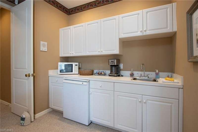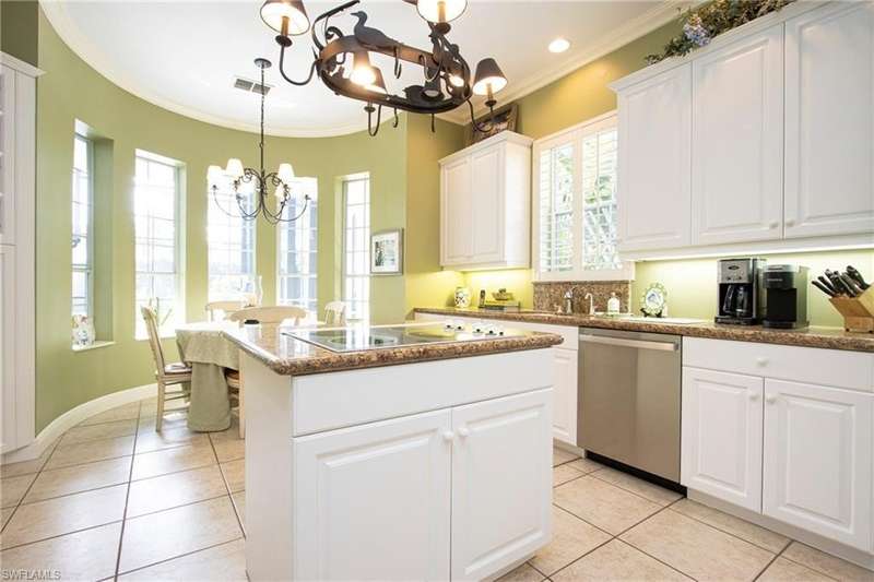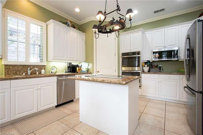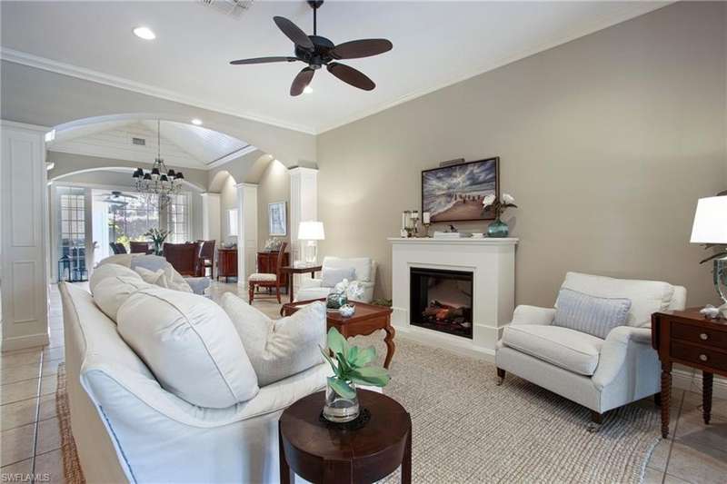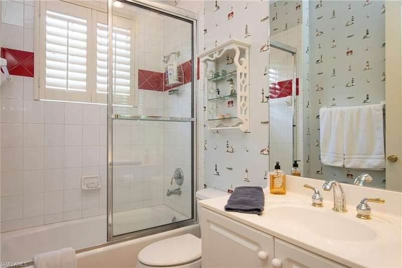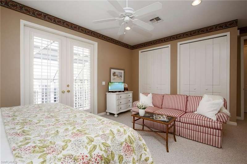 Nestled in the heart of Olde Naples, this lovely, 4 bedroom, 3.5 bath residence offers comfort, privacy, and location. As you enter the house, you are greeted with a spacious and open floor- plan, offering a cheerful interior. The living room offers a comfortable, upholstered couch, 3 side chairs, fireplace, and beautiful artwork. The dining area offers a mahogany, rectangular table, with dining for 8, buffet, and chandelier. The well- equipped kitchen offers white cabinetry, granite counters, new appliances, island, and a round kitchen table for 4. The family room offers a couch, 4 comfortable chairs, flatscreen TV, and bookshelves. The primary suite offers a king size bed, set in a wood bedframe, two side tables/lamps, dresser, comfortable chair, TV, walk-in closet, and a private bath with 2 vanities, walk-in shower and soaking tub. The 1rst guest bedroom offers a queen size bed, set in a mahogany bedframe, matching dresser, and two side tables/lamps, closet, TV, and shared bath with 1 vanity and walk-in shower. The 2nd guest suite offers 2 twin-size beds, end table, lamp, dresser, closet, and share a bath with a combination tub/shower and single vanity. The private apartment upstairs offers a king size bed, set in a white bedframe, matching end tables, dresser, comfortable couch, TV, kitchenette, and private bath with a combination tub/shower, and single vanity. Enjoy entertaining on the screened lanai and pool area ( heated). There is a dining table for 4, chaise lounges, and an outdoor gas grill. You will also enjoy a 2 car garage and 2 beach bikes. Situated on one of the most picturesque, tree lined streets in Olde Naples, and just a short walk to white, sandy beaches, 5th Avenue and Third Street shops and restaurants, this house is perfect to enjoy family, and friends.