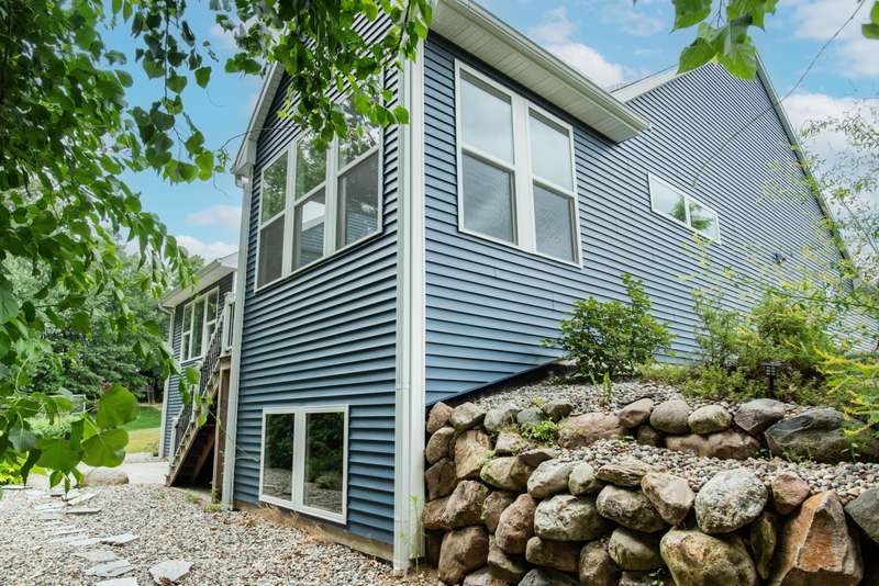 Built in 2020 located in the Portage school district, this beautiful home has been freshly painted on the main & upper levels, offering 5 bedrooms 4.5 bath , two of which are main floor primary suites. Private office w/double French drs, Four Season sunrm encased w/ windows, overlooking private scenic view. Living rm w/so much detail; gas fireplace, built-ins, box beam ceiling. Custom bench at mudroom w/ large walk in closet for all the outdoor gear. Spacious main flr. laundry rm w/ extended folding counter, utility sink, W/D included. Lower level offers large rec rm with large daylight windows. Additional unfinished framed space could be a 6th bdrm or flex rm. Luxury Vinyl plank and ceramic tile at all 3 level. This home has gutter guards, & professionally landscaped irrigation