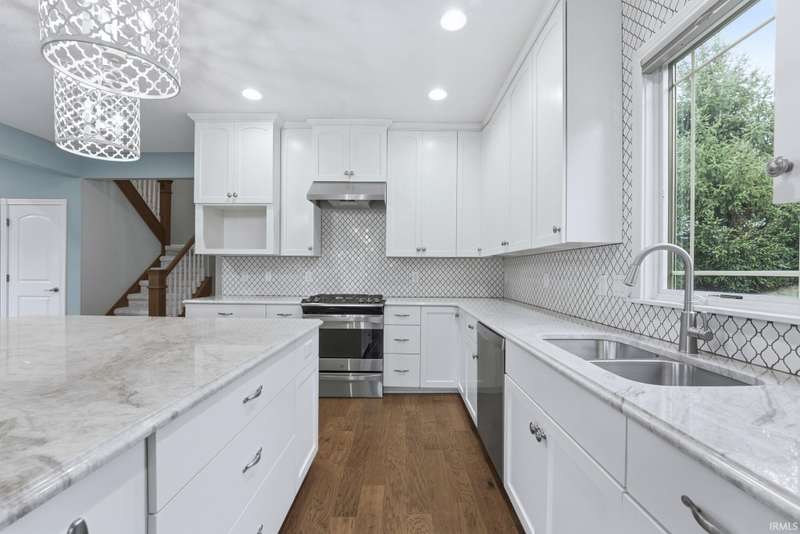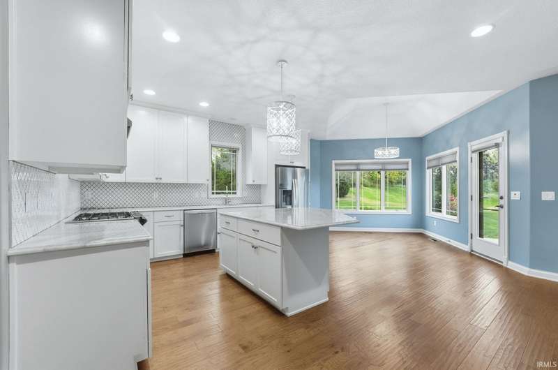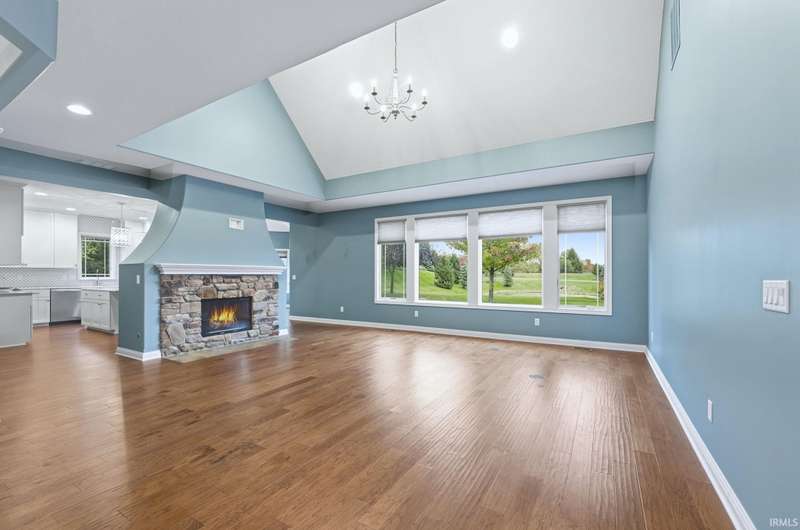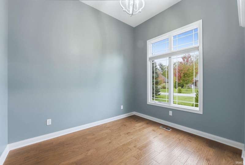 This is the view and setting you do not want to miss! Lush landscaping and trees abound in the exclusive community of the Parke. This 2600sq ft home is situated on a quiet culdesac with a spacious yard and a beautiful direct view of the fountain in the serene pond in the backyard. This villa offers a main level primary suite, new Taj Mahal quartz countertops, new custom tile backsplash in the kitchen, fresh paint and warm hardwood floors. The spacious main floor boasts a ton of natural light, spaces for formal dining and breakfast nook, and an office with french doors! The quarterly villa fees include lawncare, fertilizing, trimming, mulch, snow removal and window washing 3x per year. Irrigation system included. This turn key home is a must see-- come take a look before it's gone!