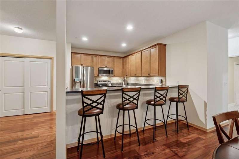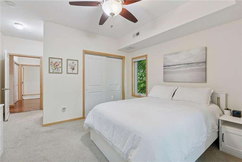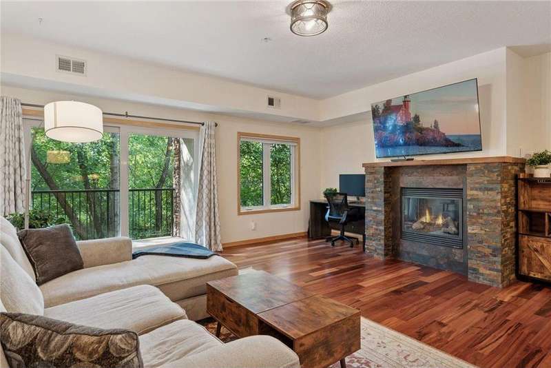 Experience refined, low-maintenance living in this beautiful 2 bedroom, 2 bathroom corner unit just steps from Medicine Lake. Designed for comfort, style and convenience, this unit features an open-concept layout with a spacious living room and dining room, elegant gas fireplace, and a large private west facing deck ideal for morning coffee or evening relaxation and sunsets. The kitchen offers stainless steel appliances, generous cabinets and counter space for ample storage and a breakfast bar perfect for entertaining or casual dining. The primary bedroom suite includes full private bath and access to the deck offering private nature views. The second bedroom with windows to the south is light-filled and perfect for guests, a home office, or flex space. Enjoy the ease of in-unit laundry, two heated garage spaces, and a dedicated storage unit. Updates include furnace & AC (2022), dishwasher (2022), fridge (2021), washer/dryer (2020), roof (2020). Located in a secure, well-maintained building with elevator access and updated common areas. Steps to lakeside trails, parks, and just minutes to shopping, dining, plus easy access to Hwy 55. Wayzata Schools. A rare opportunity to enjoy turnkey living in an exceptional location!